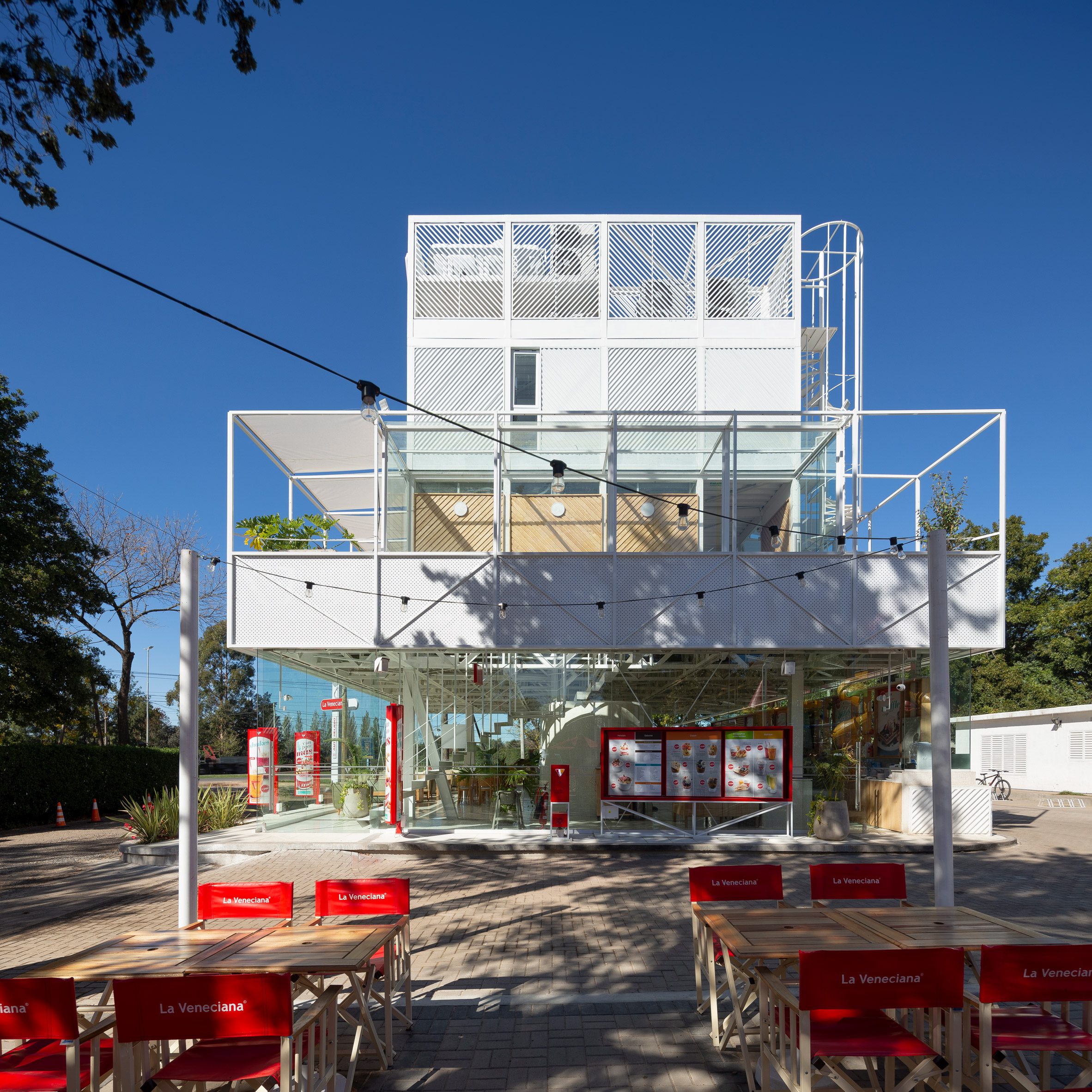 La Veneciana Canning 아이스크림 드라이브 스루는 DRM Arquitectura의 혁신적 설계와 기술적 접근이 결합된 현대 건축물입니다. 이 건축물은 기능성과 심미성을 모두 아우르며, 도시와 자연, 사용자와 공간이 어우러지는 새로운 경험을 창출합니다.