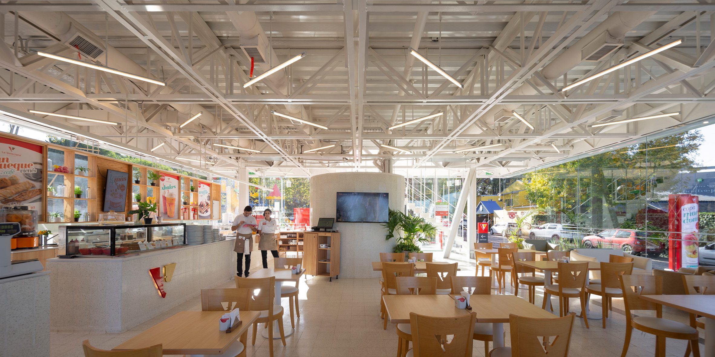 "The metal structure is undoubtedly the protagonist of the space; making architecture from the structure is what we are passionate about," the team said.
