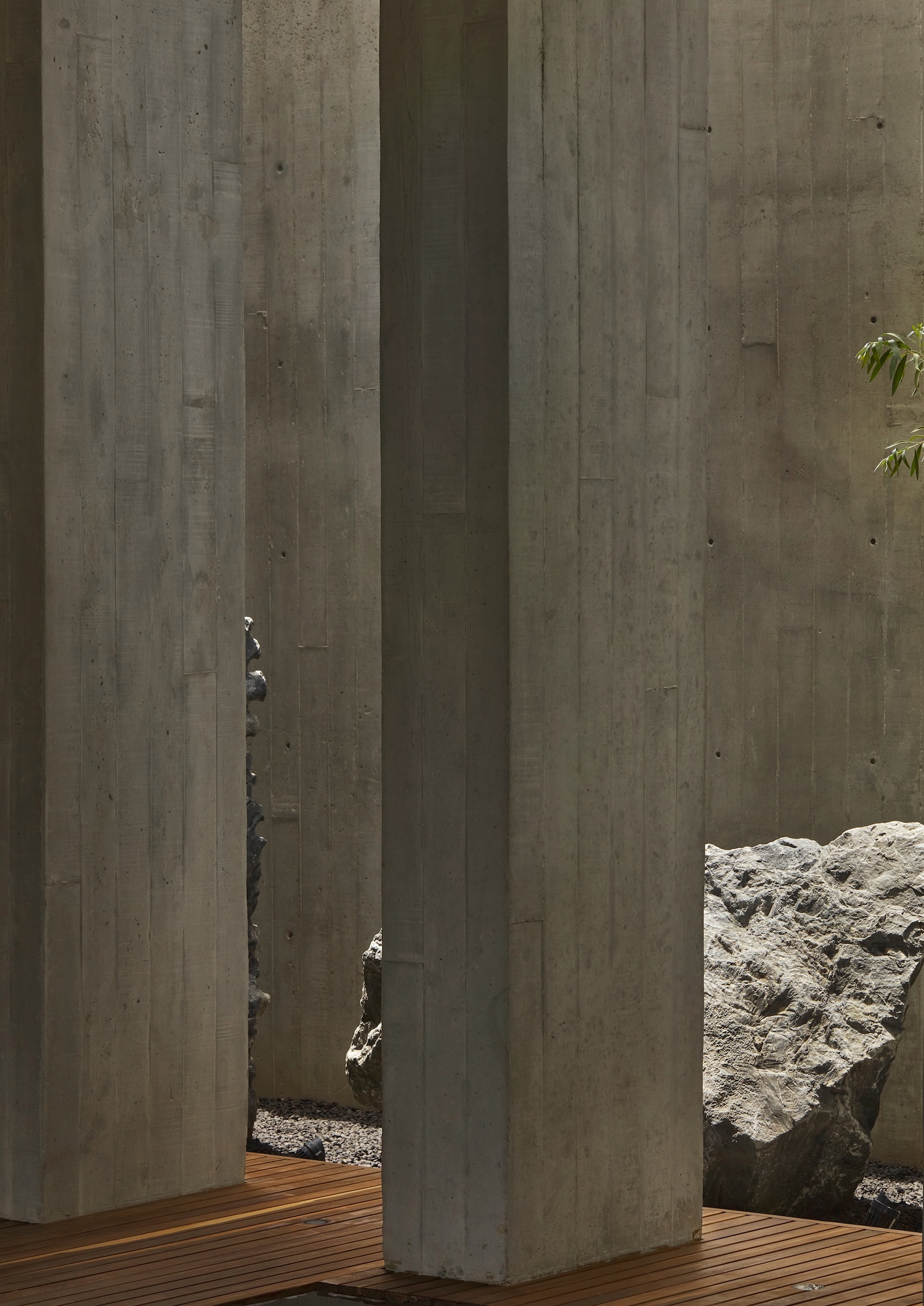 주택은 주변 환경과의 상호작용을 극대화하기 위해 현지에서 조달한 자재를 사용했습니다. 자연광을 적극적으로 활용하고 실내외 식물 배치를 통해 건축물과 자연의 경계를 모호하게 만들어, 사용자가 자연과 하나 되는 경험을 할 수 있도록 설계되었습니다.