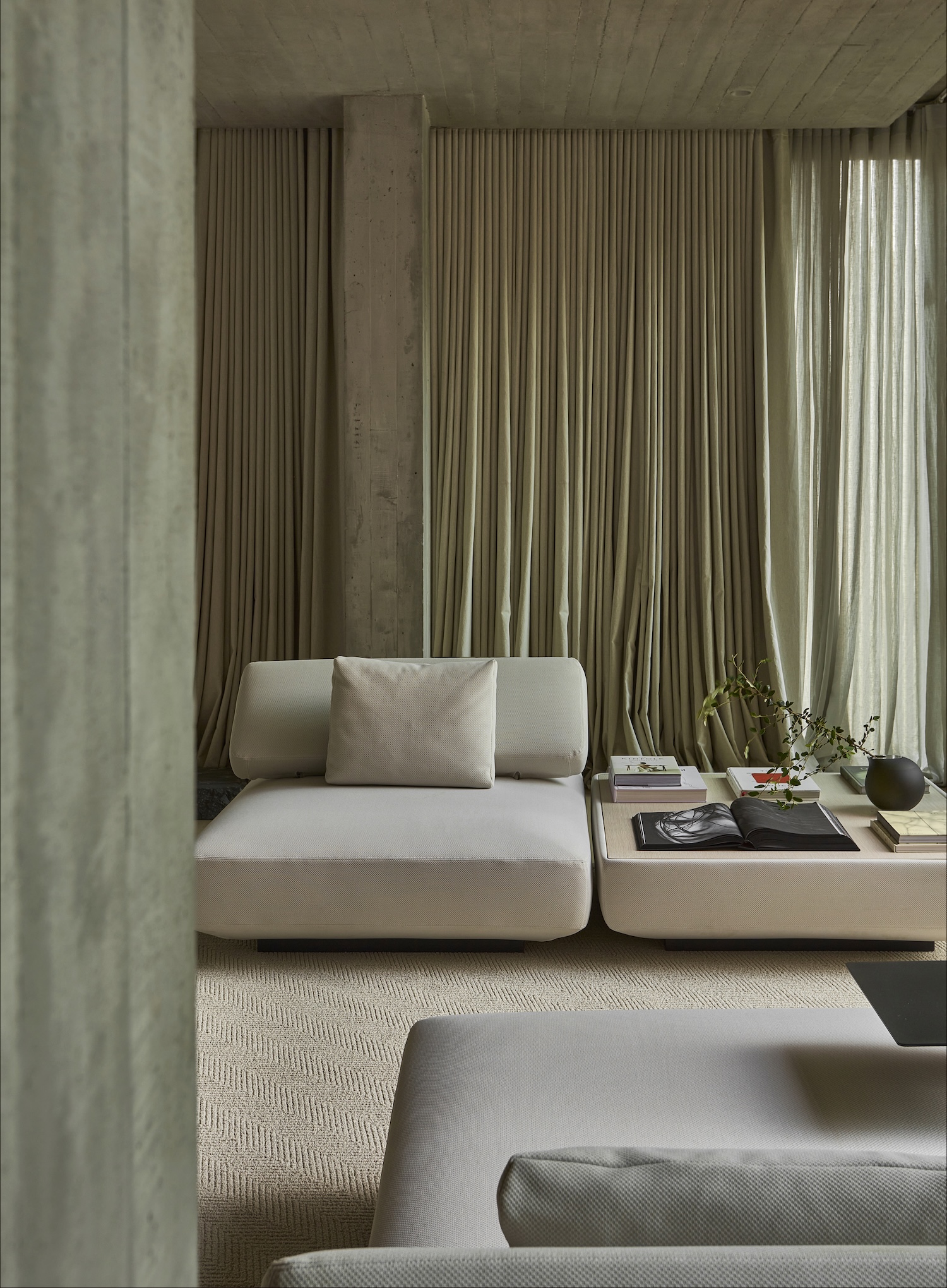이 복도는 수직 기둥을 통해 빛을 필터링하며, 사용자들에게 시간대에 따라 변화하는 시각적 경험을 제공합니다. 이러한 설계는 공간을 단순히 기능적으로 사용하는 것을 넘어, 감각적이고 정서적인 만족을 제공하는 데 초점을 맞추고 있습니다.