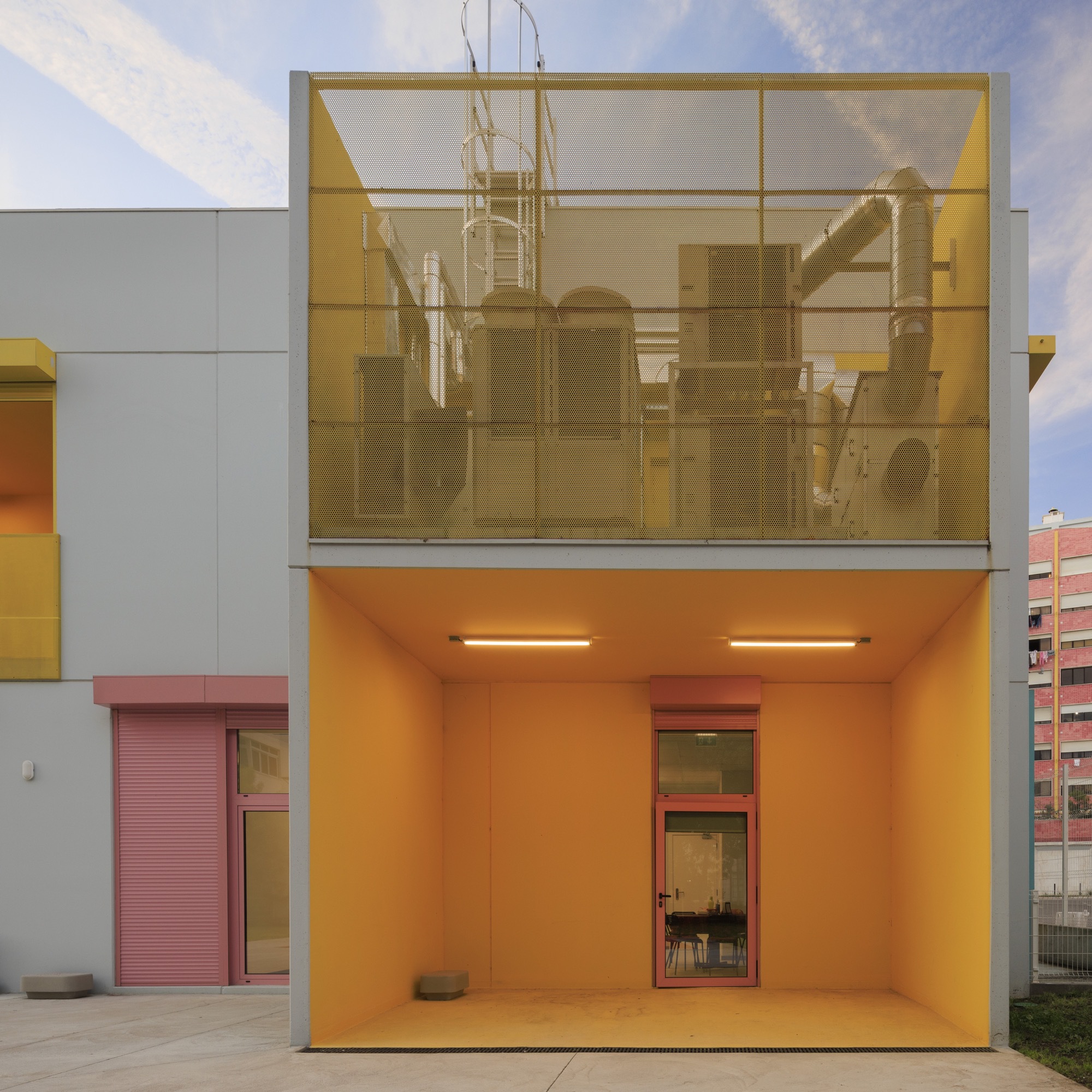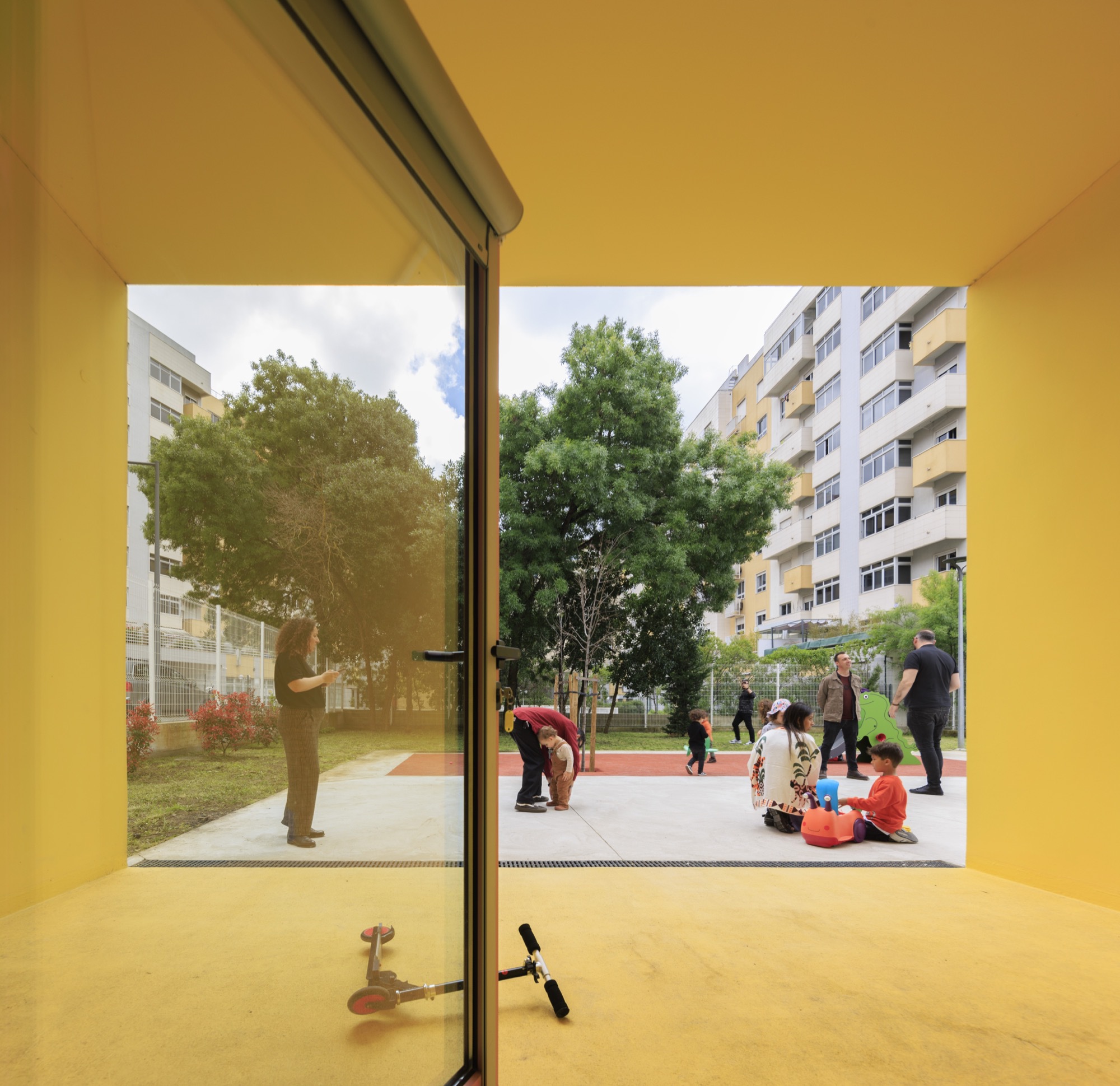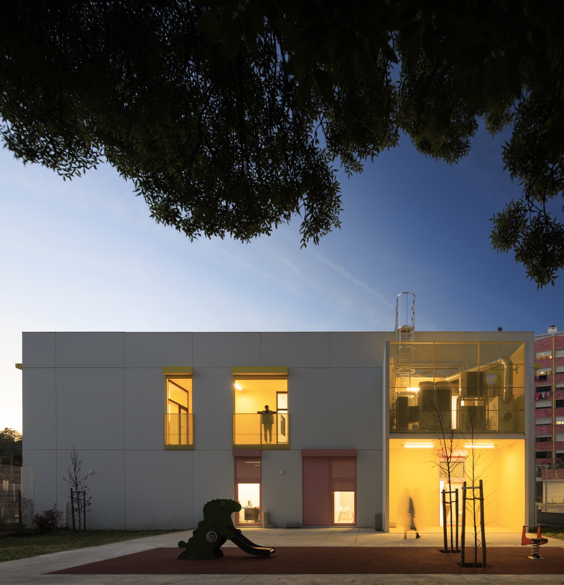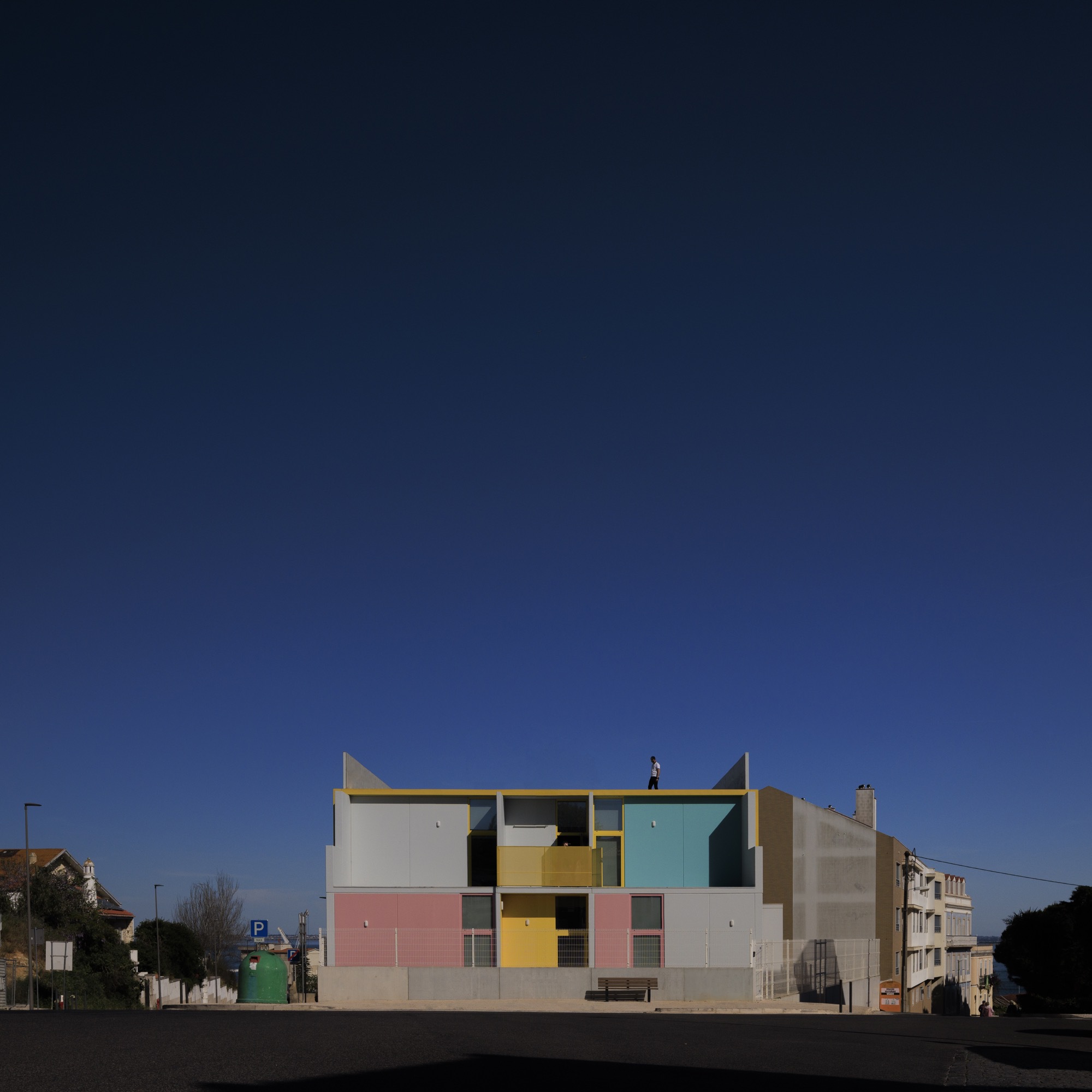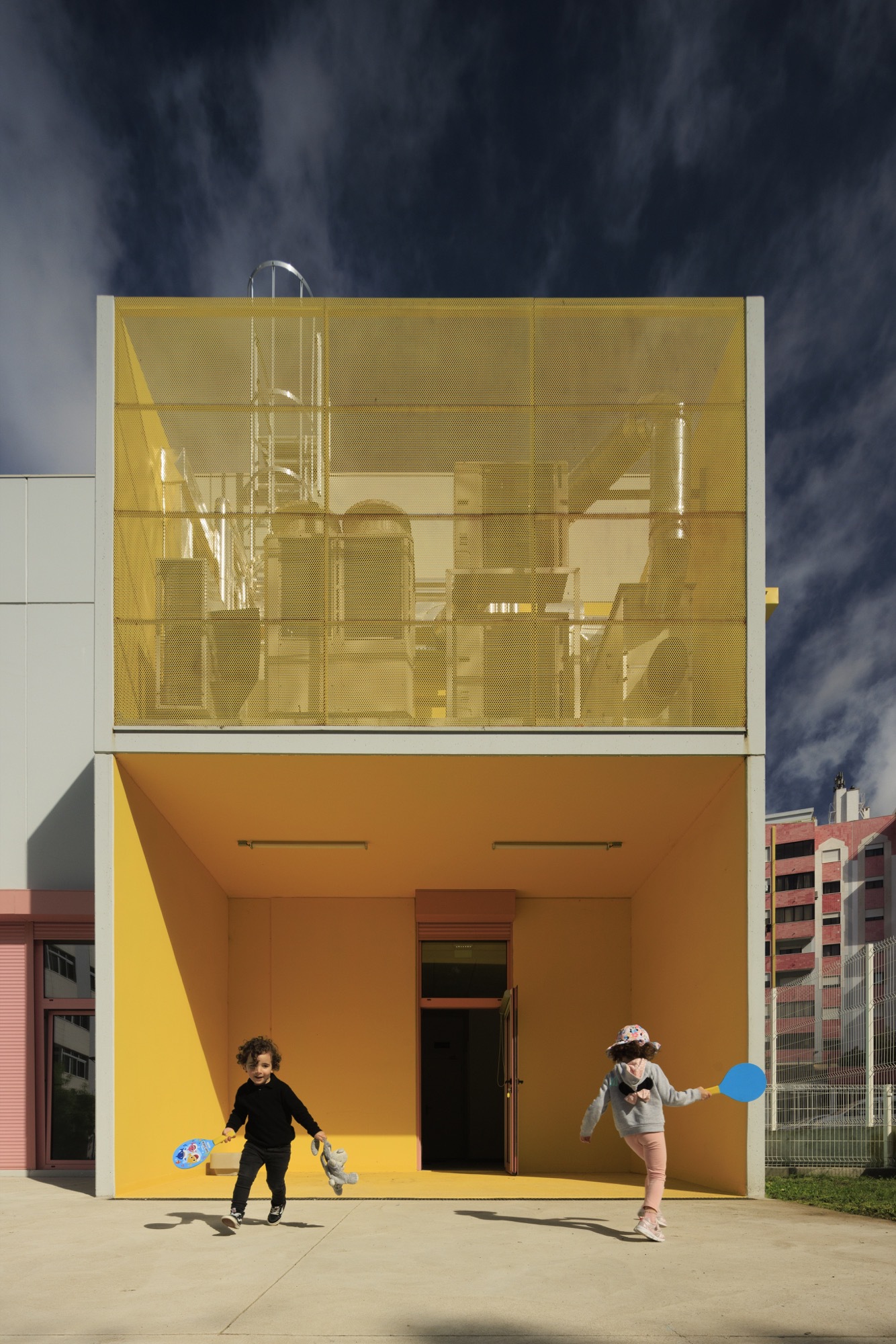 The buildings emerged in response to a public initiative project for the construction of kindergartens in various areas in Lisbon, through a competition launched by the Municipality. The starting point was a standardized solution that allowed for economic intervention, quick execution, and the creation of an identifiable image, making these facilities recognizable throughout the city. The proposal is based on the overlapping of structural modules in reinforced concrete, with a “U” section, shaping the building's surfaces. The choice of this material is linked not only to the modular configuration but also to the requirement evident in the competition program to ensure solutions of high and proven durability and low maintenance.