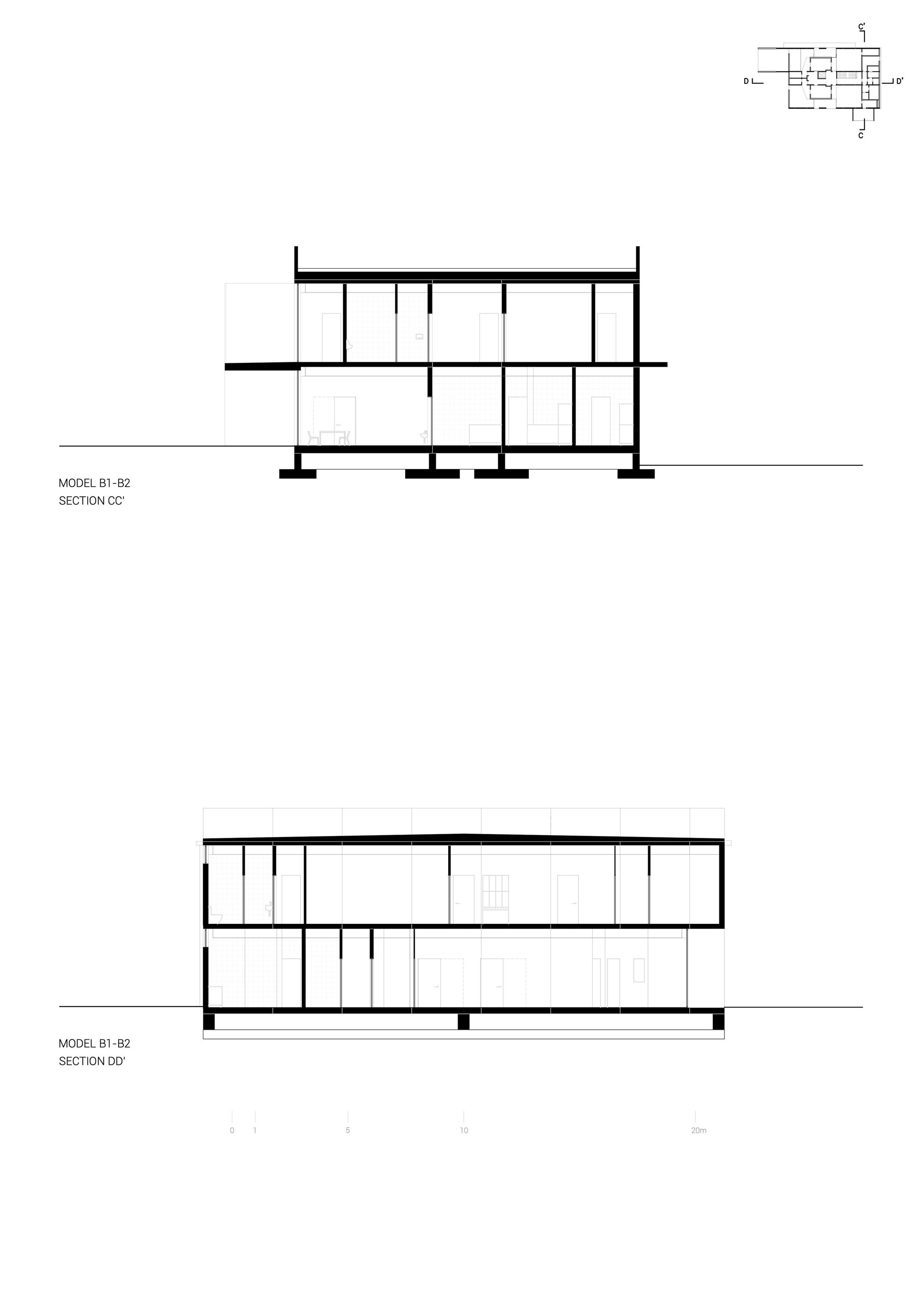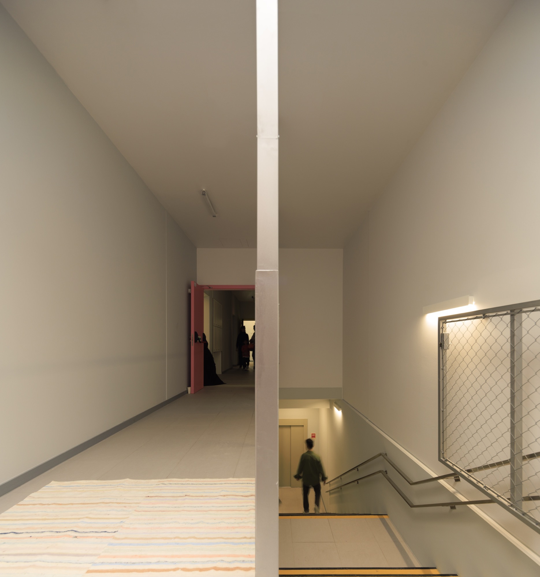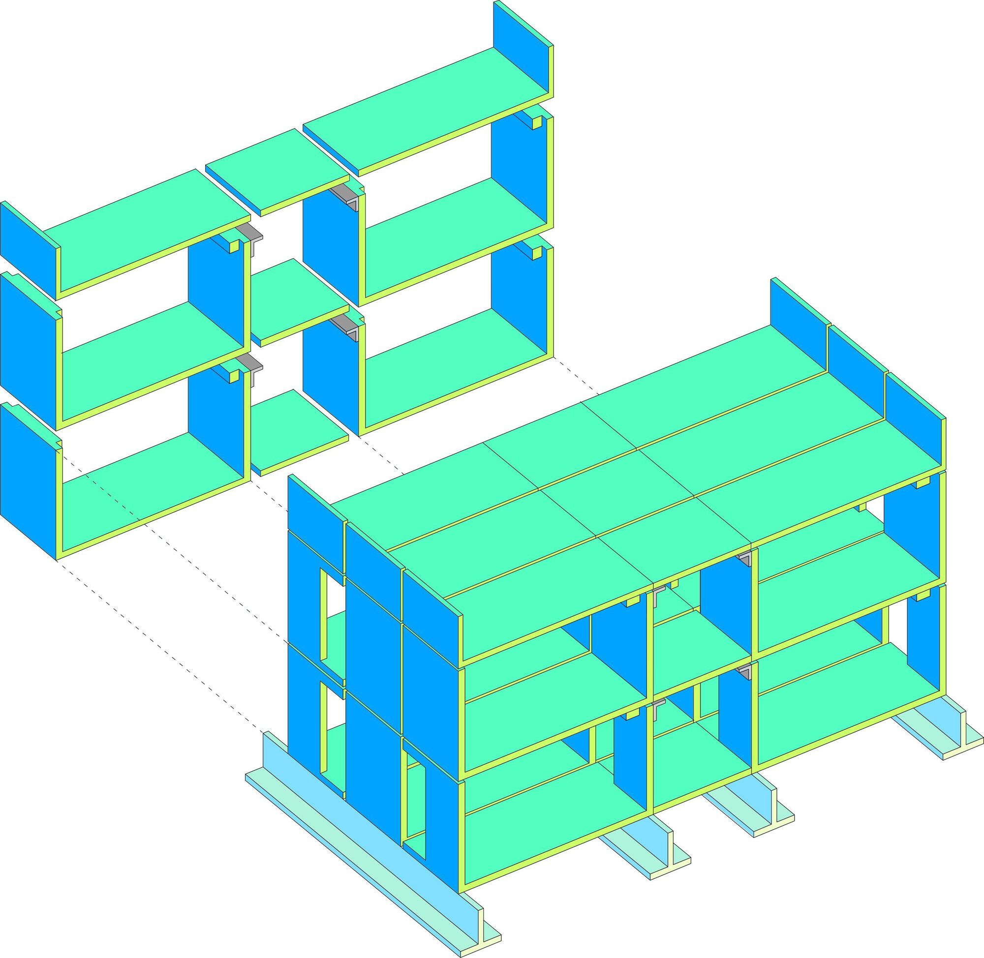 The standardization of solutions naturally implies a formal analogy among the four kindergartens. The image of the buildings arises from the potentialities and limitations imposed by the modular construction system. From the exterior, a clear tectonic reading of the buildings is possible the joints are visible, and one can discern each of the modules and the way they are arranged and supported. These 4 nurseries feature a similar organic and functional distribution: two groups of overlapping “U-shaped” modules, housing various compartments, and a central corridor between them where all horizontal and vertical circulation takes place (corridors, stairwells, and elevators). It is also within these central corridor lines that the main sections of the heating, ventilation, and air conditioning infrastructure are located, reaching the compartments through the adjacent side walls.