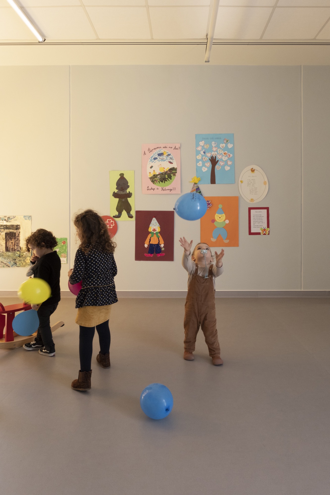 The circulation spaces are straight and linear, facilitating user orientation within the building and visibility between all areas, promoting functionality and safety. The outdoor spaces have been designed as an extension of the indoor activities. Some non slip paved areas are proposed, so that wheeled toys can be used. We also considered the existence of garden areas for outdoor activities with the children. The vegetal cover on most of the outside surface contributes to soil permeability. The choice of plant and tree species was based on the criteria of adaptation to the climate, low water requirements and the exclusion of species that could cause allergic problems.