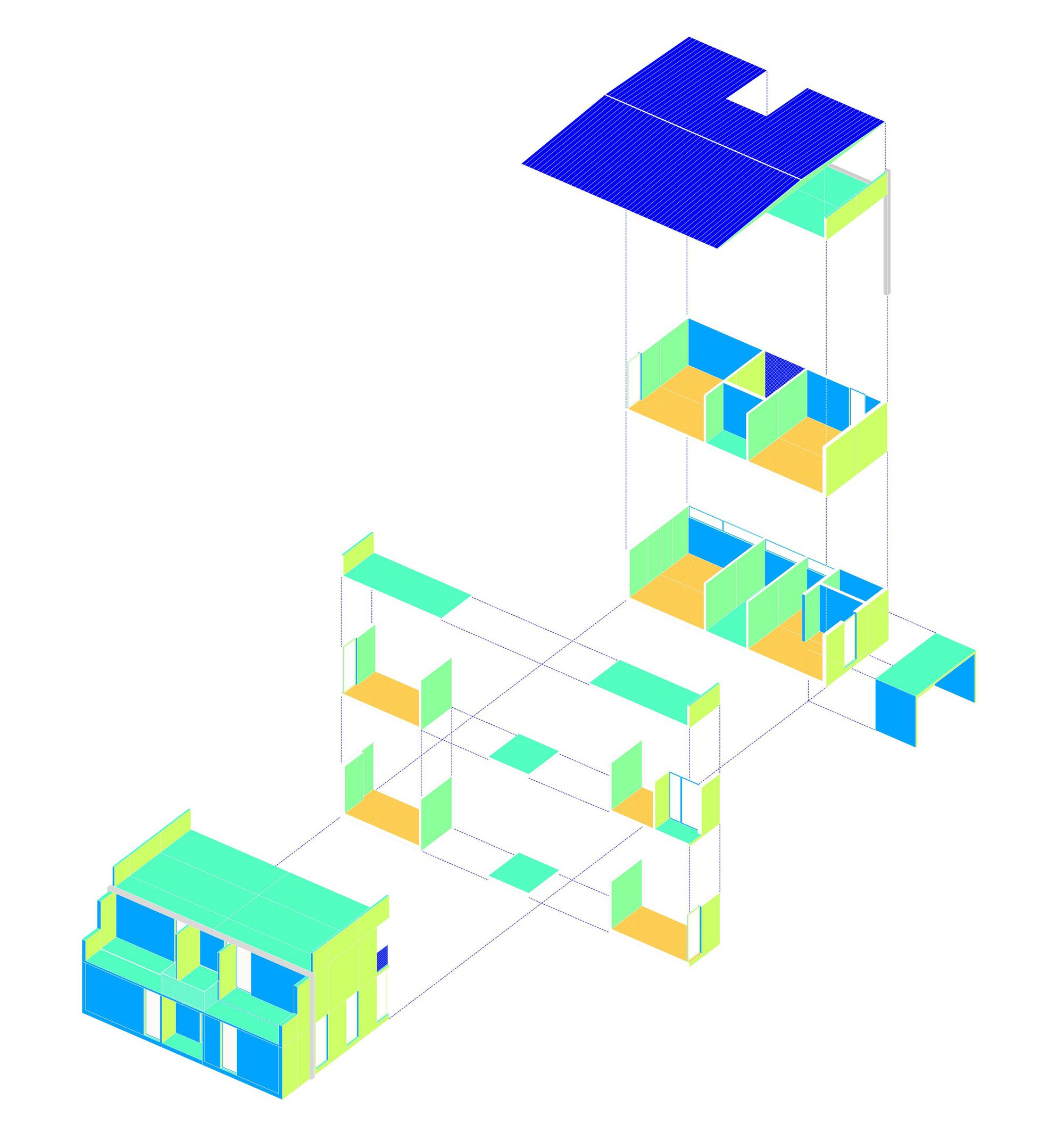 이 프로젝트는 철근 콘크리트 "U" 모양의 모듈식 구조를 중심으로 설계되었습니다. 이 설계는 내구성이 뛰어나고 유지 보수가 적게 들며, 빠르고 효율적인 조립 과정을 통해 구현되었습니다. 각 모듈은 외벽, 테라스, 그리고 내부 공간을 구성하며, 독특한 시각적 정체성을 제공합니다. 특히 다양한 색감의 마감재를 사용하여 밝고 활기찬 분위기를 조성했습니다. 어린이의 시각적 높이를 고려한 설계는 공간 경험을 다각화하며, 색채와 형태를 통해 심리적 안정감과 창의적 영감을 제공합니다.