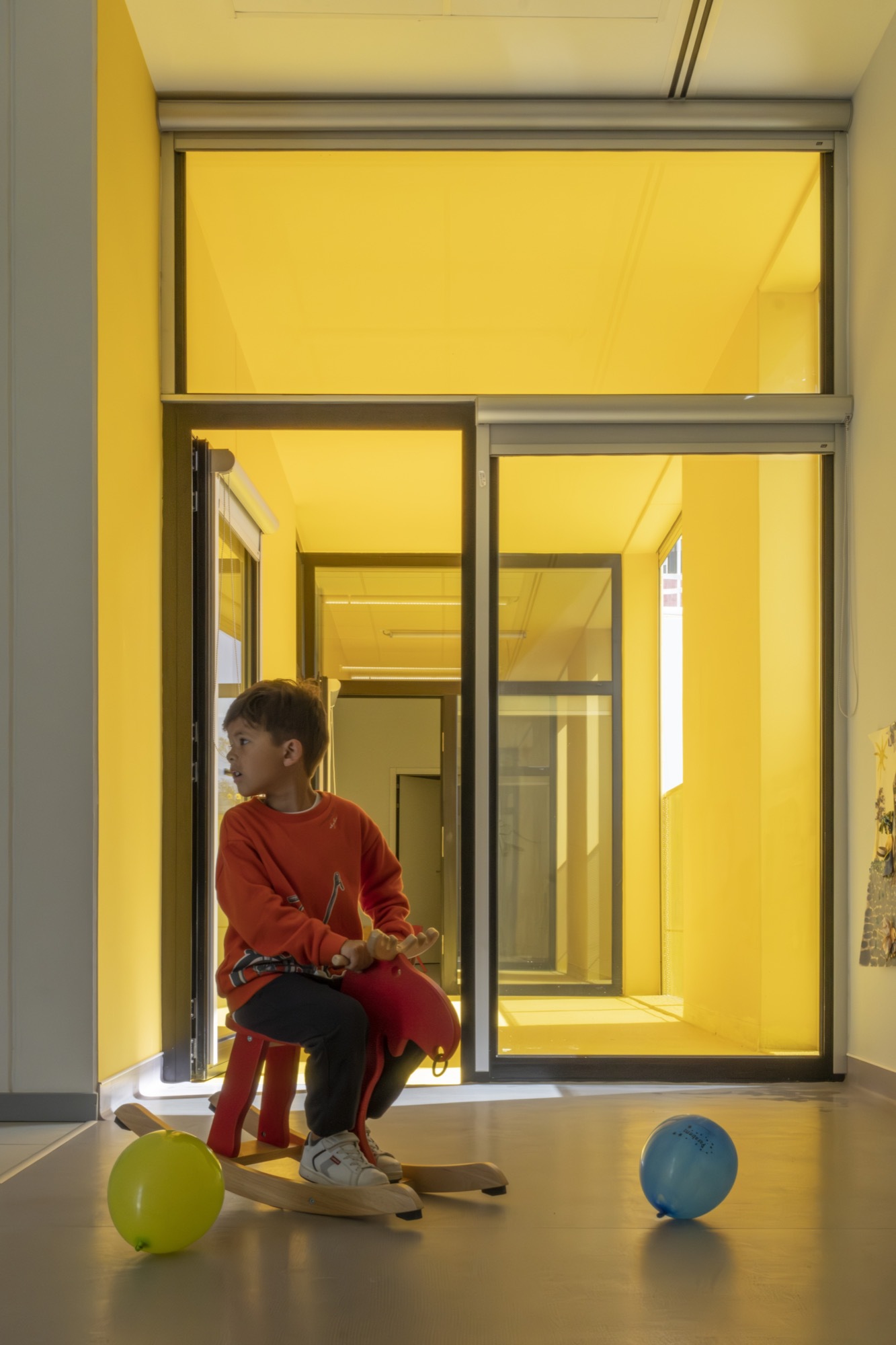 All the structural components of these buildings, including the foundations, were prefabricated in a factory under controlled conditions. They were then assembled on site within a few days. These prefabricated components not only form the structure of the building but also define the facades, floors, and interior compartments. This approach allowed for a faster and more controlled construction process, avoiding on-site concreting, thus reducing waste, noise, and dust. The goal was to increase the city's network of public kindergartens without disrupting the surrounding neighbourhood during construction. Both the process and the result were equally important in achieving this objective.