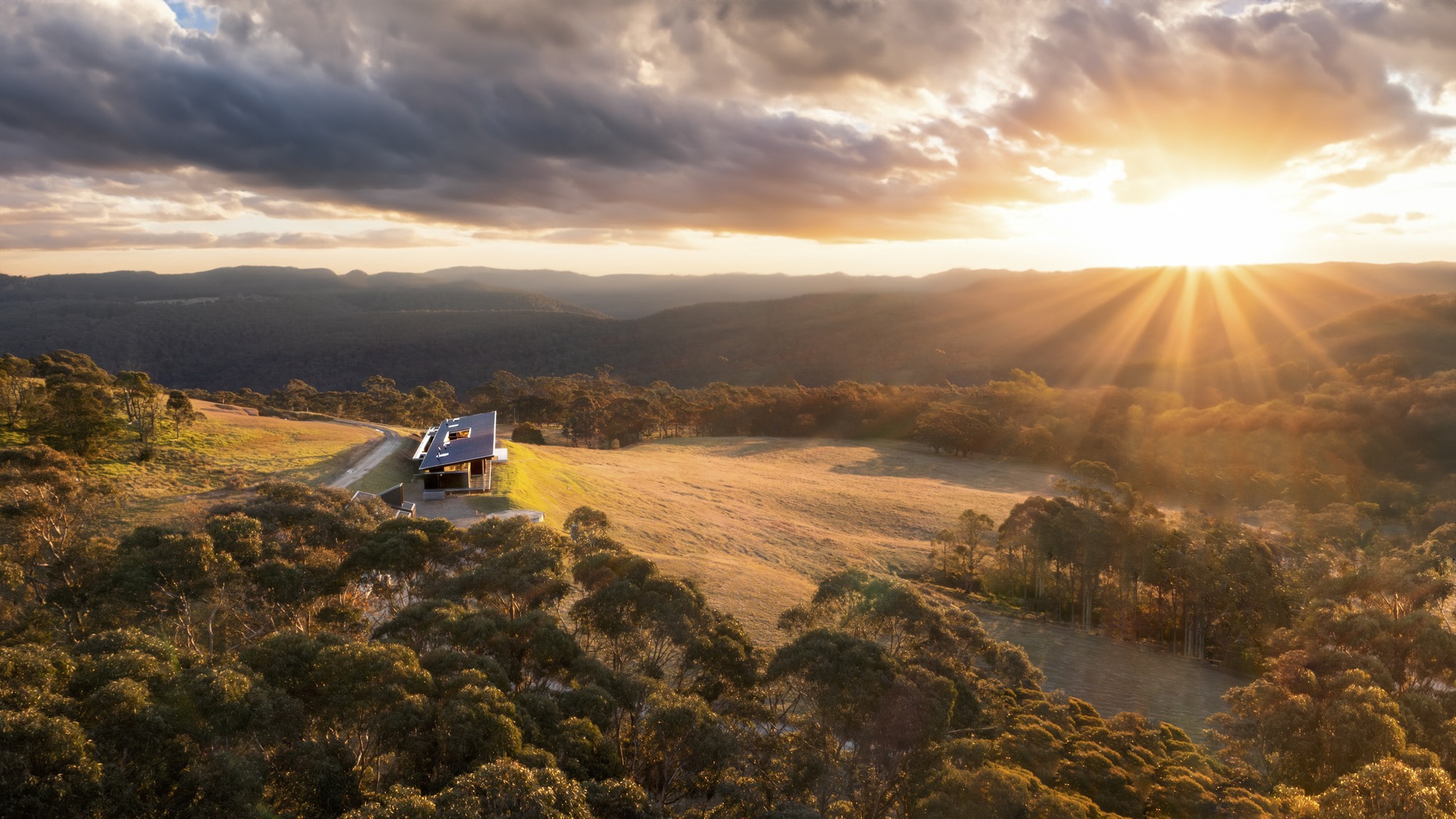 Location -Nestled atop Mount Tootie in Bilpin, on the northern edge of the Blue Mountains, Mountaintop Bilpin Resort offers a serene escape into nature. Just 6 km from Bilpin's town center and 90 km from Sydney, this 40-hectare retreat provides breathtaking views and tranquil surroundings. Bilpin, known as the "Land of Mountain Apples," is famous for its crisp apples, fresh juice, and summer apple-picking season. The town features charming roadside stalls located along the historic Bells Line of Road. The resort, at the end of Mount Tootie Road, is bordered by Wollemi National Park, ensuring privacy and immersion in lush wilderness. Design Concept - The resort's design integrates seamlessly with its natural surroundings, embodying the philosophy of "nature as stay, stay as nature." This concept fosters a deep connection with the environment, offering tranquility, balance, and comfort.
