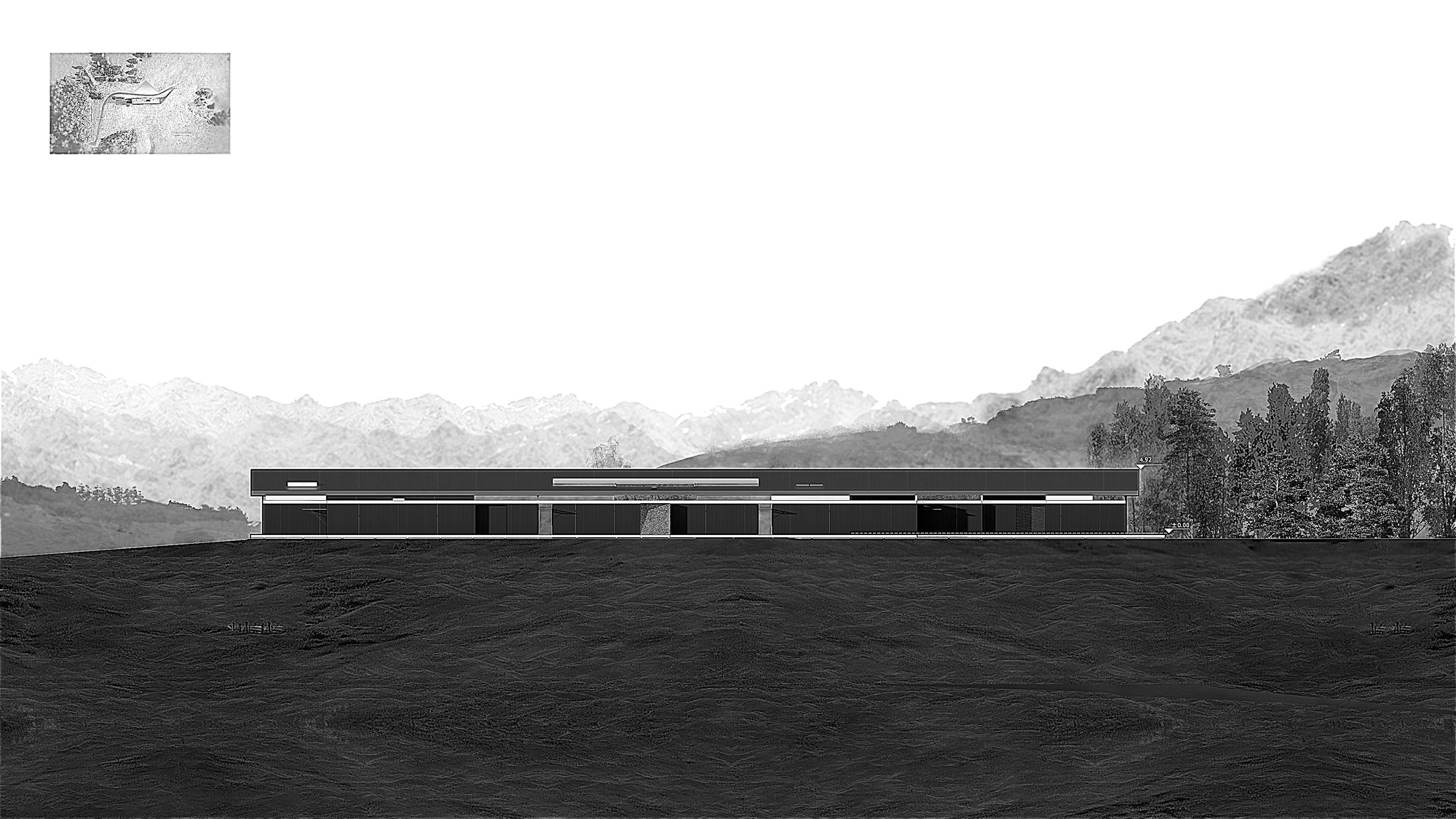 Architectural Design - The resort features two cabins along a 70meter ridgeline, each spanning 170 square meters and accommodating 8–12 guests. A 300-square-meter central courtyard, with a serene water feature, connects the cabins. This versatile space is ideal for yoga, wellness sessions, weddings, corporate events, and music gatherings. The architecture harmonizes with the mountain's contours, creating a tranquil yet functional environment for memorable experiences.
