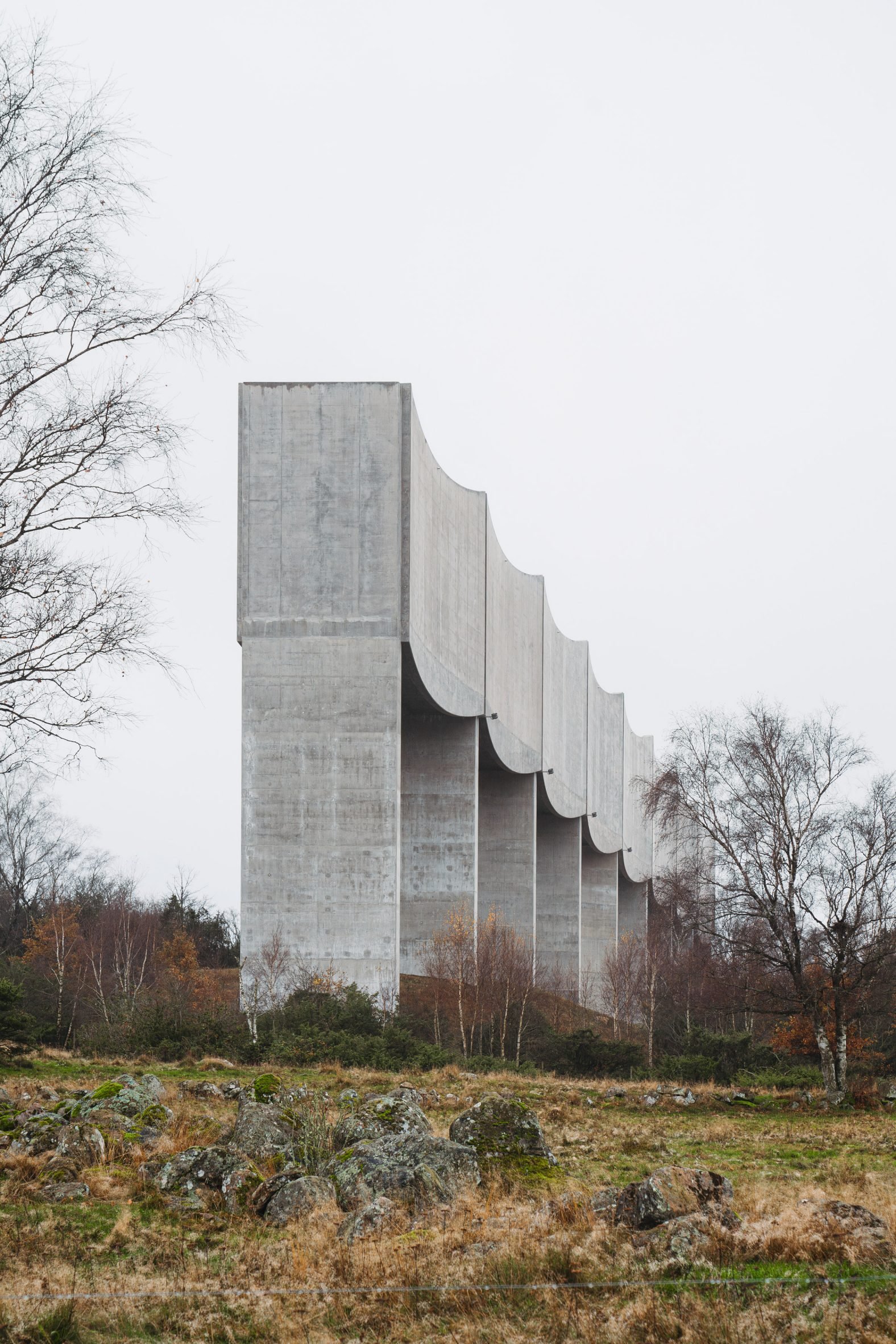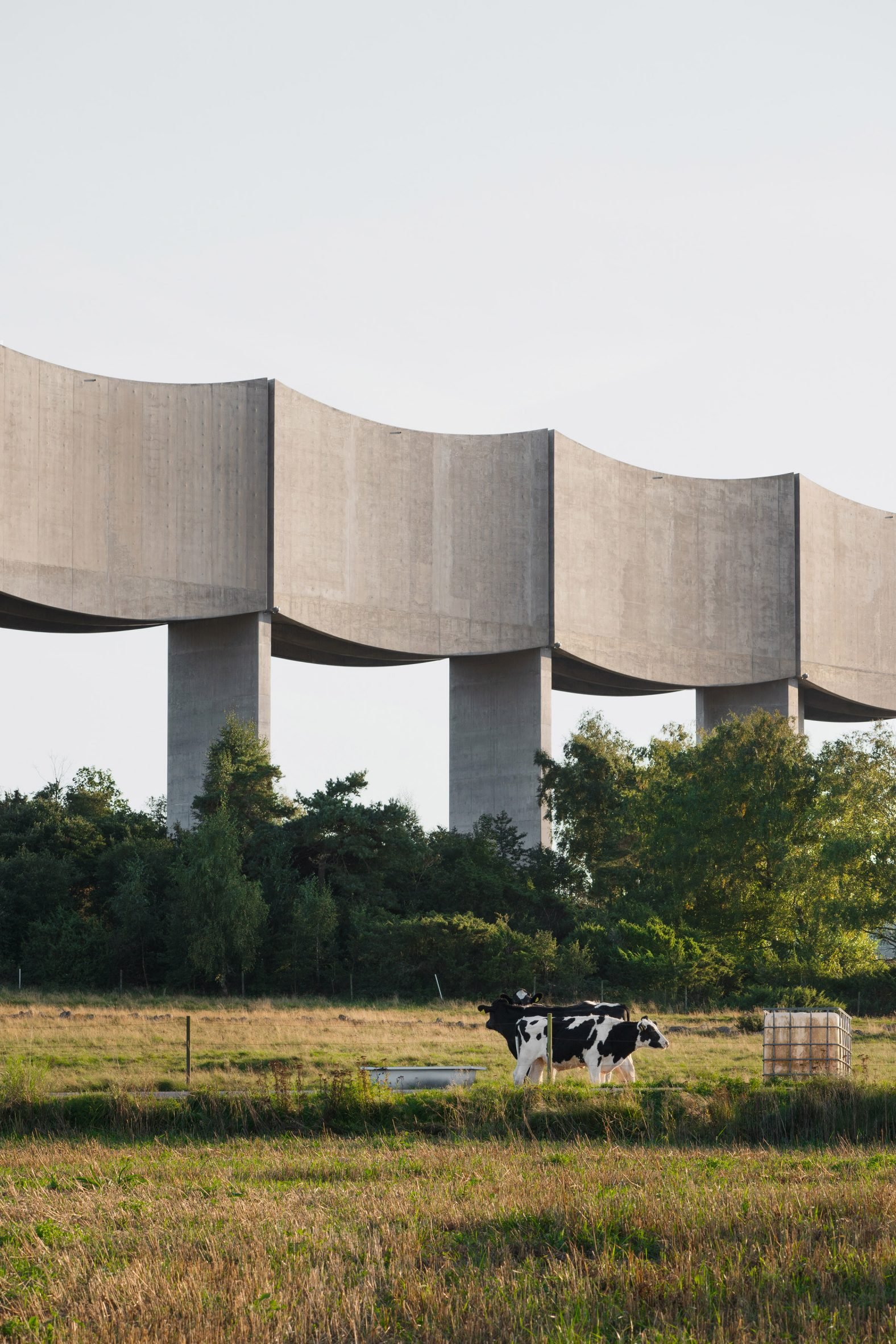A wave like reservoir made of concrete and elevated on nine columns forms Våga Water Tower, which Swedish studio White Arkitekter has created in Varberg, Sweden.