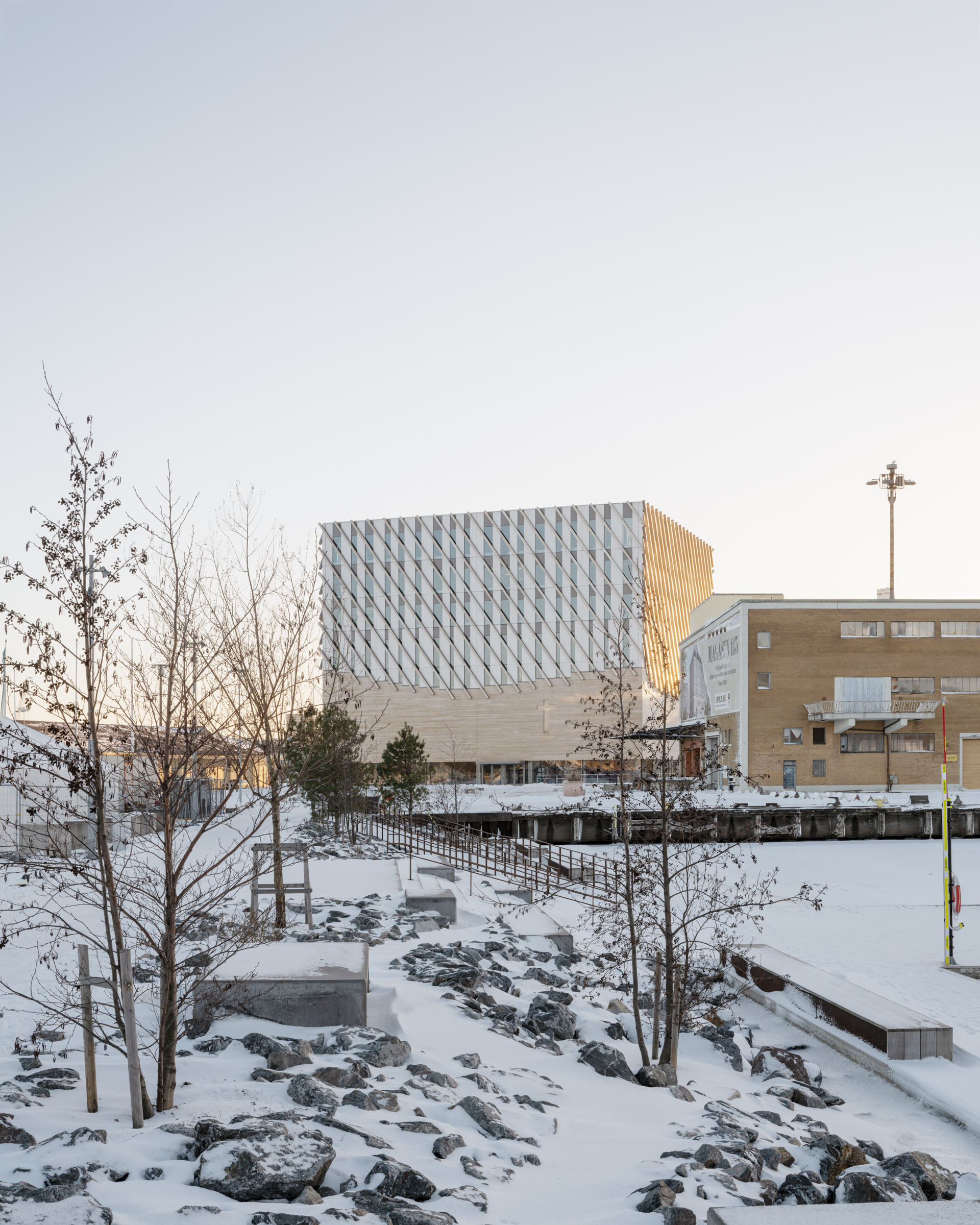 Frihamnskyrkan The new church building in the redeveloped docklands, for Gothenburg's multicultural Pentecostal parish, is a large mixed-use facility. The building embodies an extensive program consisting of three sacral spaces alongside spaces for children, education, music studios, café, sports hall, a parish kitchen for culinary exchange, and not the least a charity grocery hand-out.