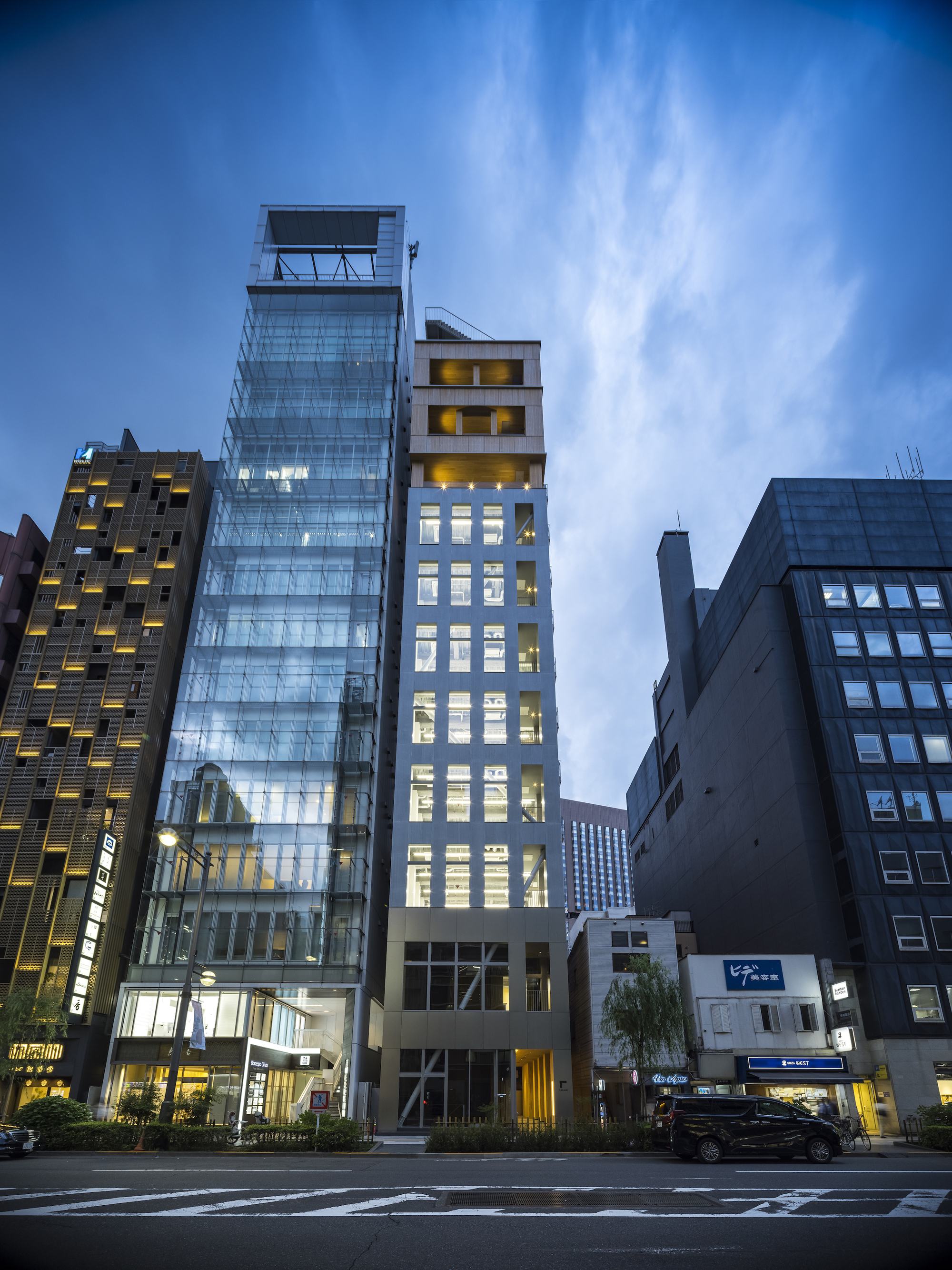 Multidimensional use of the Edo period's traditional alleys, and rationality of using a partial wooden structure. The Ginza district retains the Edo period layout of alleys and townhouses. This project replaces the Ariga Shashinkan building, once home to the "Candle" restaurant frequented by literary figures such as Yusanari Kawabata and Yukio Mishima. The choice of a wooden structure had been on our minds from the very beginning of the project to reconstruct this historic building. With the recent momentum for wooden structures and the use of domestic timber thanks to the Sustainable Development Goals (SDGs), we figured that if we could realize a wooden building in the world-famous Ginza district, we could make a pioneering statement in the Japanese cityscape.