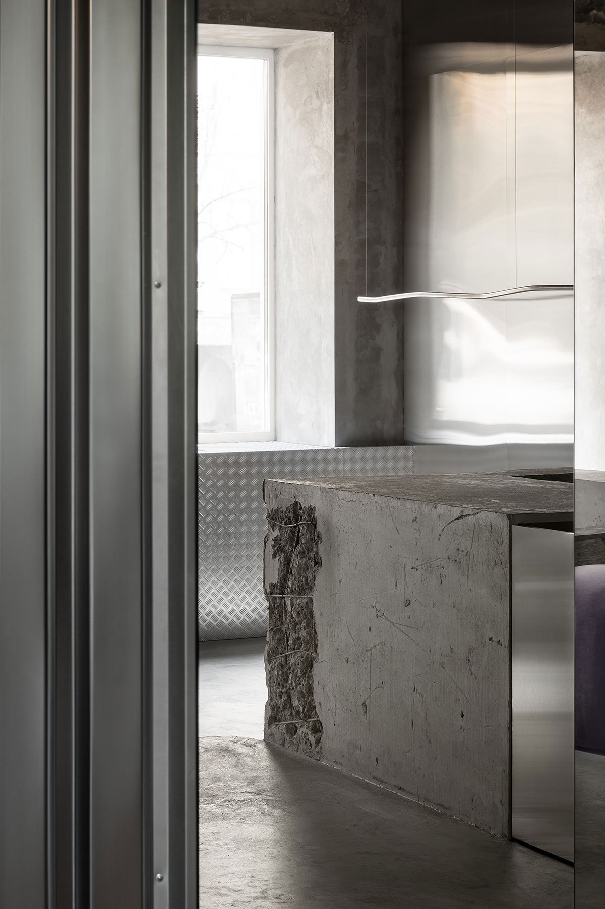 Designed by architect Anastasiia Tempynska from interior design studio Temp Project, this innovative retail space in Kyiv merges the rugged, industrial allure of streetwear culture with the enduring resilience of a city in transition. The project brings together two streetwear stores defined by the distinct vision of their owners, a dynamic entrepreneurial couple. Through a thoughtful blend of raw materials, preserved architectural features, and playful design elements, the renovated space strikes a balance between the gritty edge of Storage's menswear and the softer, industrial-chic sensibility of Domaine 17's womenswear, offering an immersive retail experience, rooted in the reclaimed aesthetics of urban landscapes. Completed despite the ongoing challenges of the war, the showroom stands as a powerful statement of creativity, defiance, and the unyielding spirit that defines the city of Kyiv.