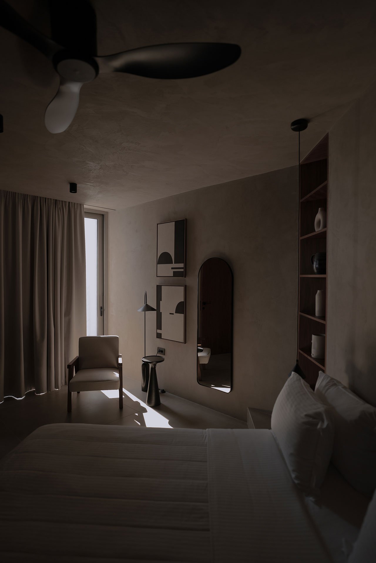 미니멀한 색감: 화이트와 뉴트럴 톤을 주조로 하여 강렬한 지중해의 자연광과 조화를 이루며, 청량하면서도 차분한 공간감을 조성합니다.