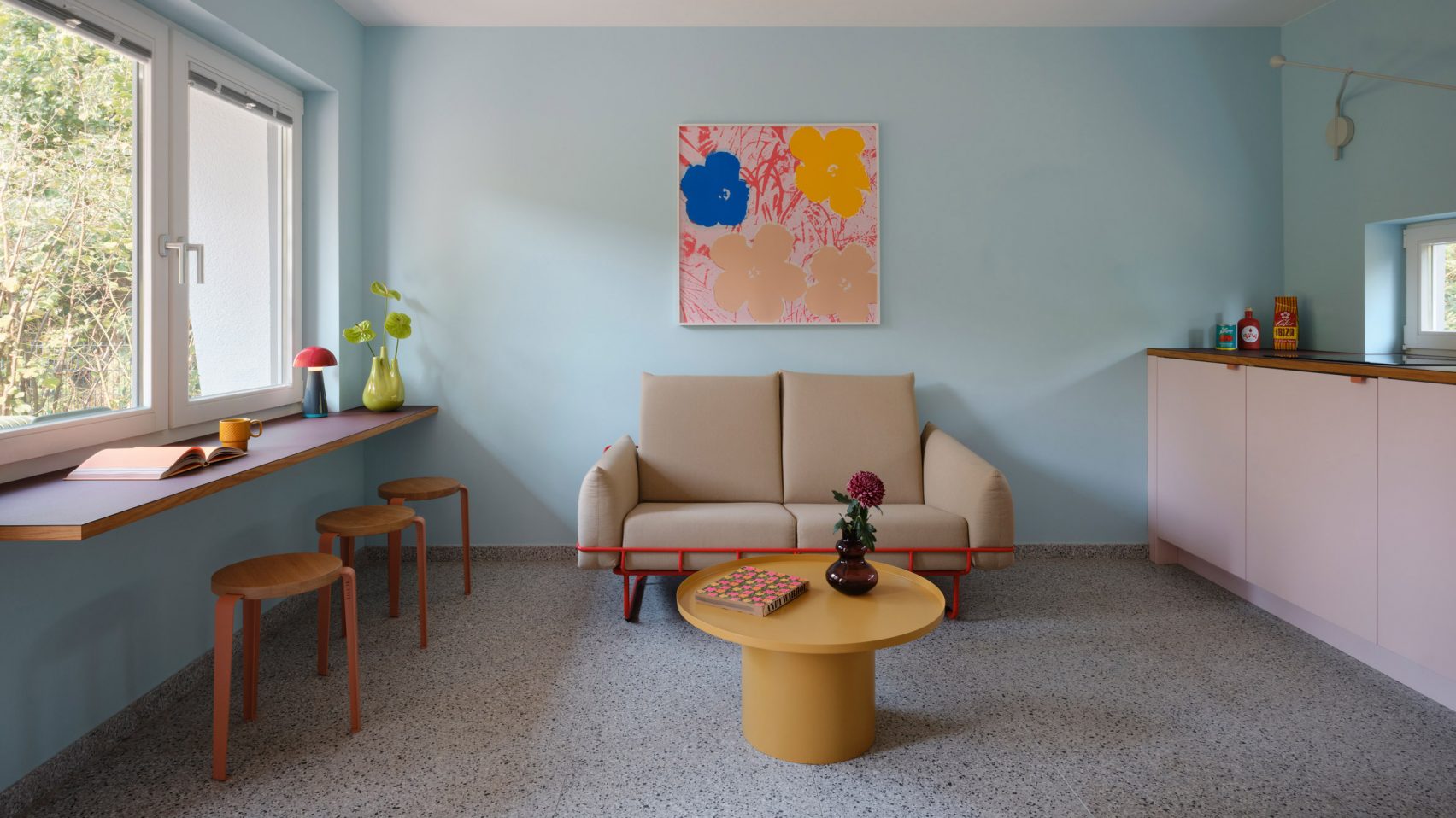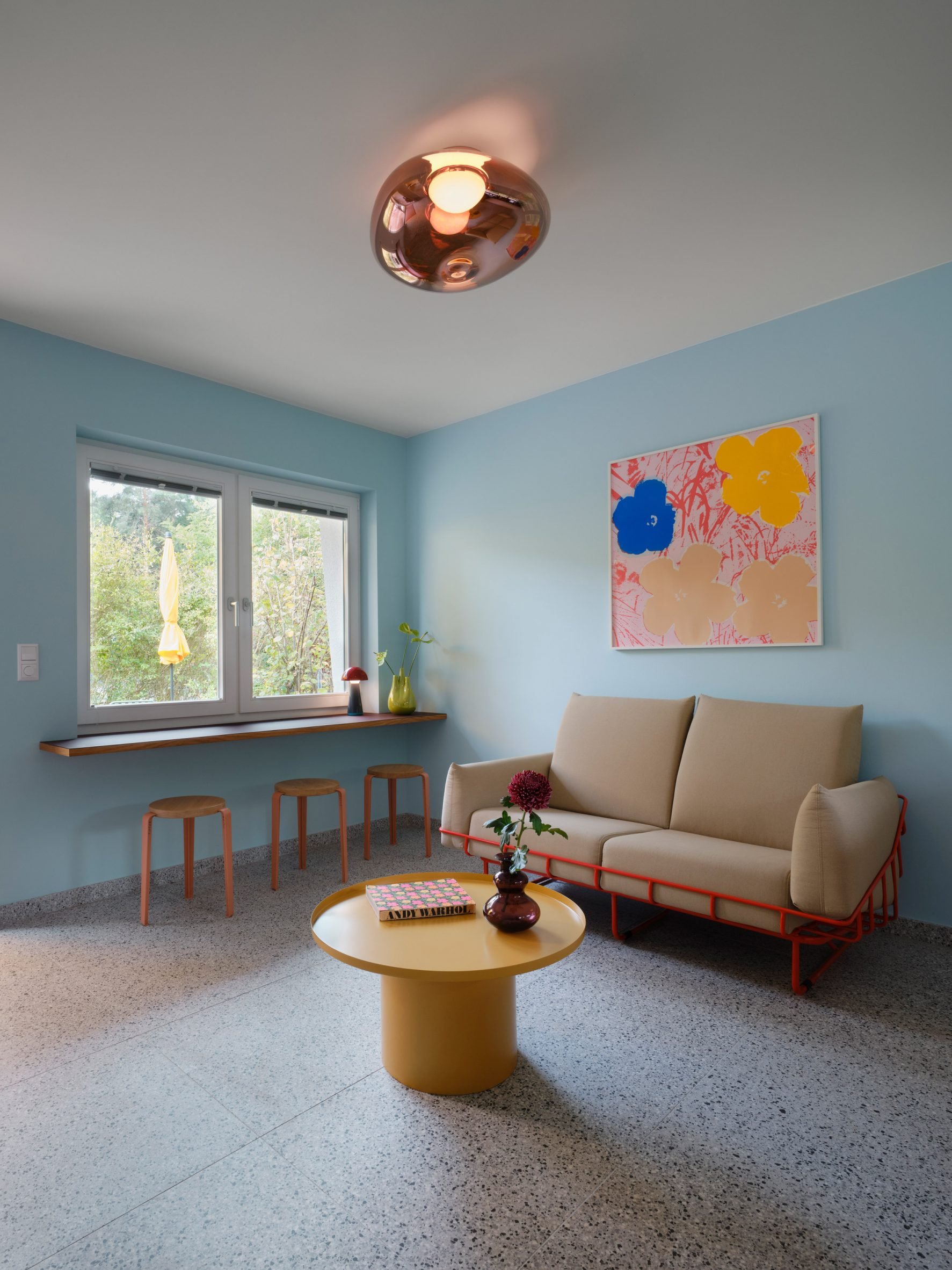 1960년대 동독(GDR) 휴양지에 지어진 방갈로가 캘리포니아 모더니즘 특유의 밝고 경쾌한 색감을 적용해 독창적인 휴가용 주택으로 탈바꿈했다.