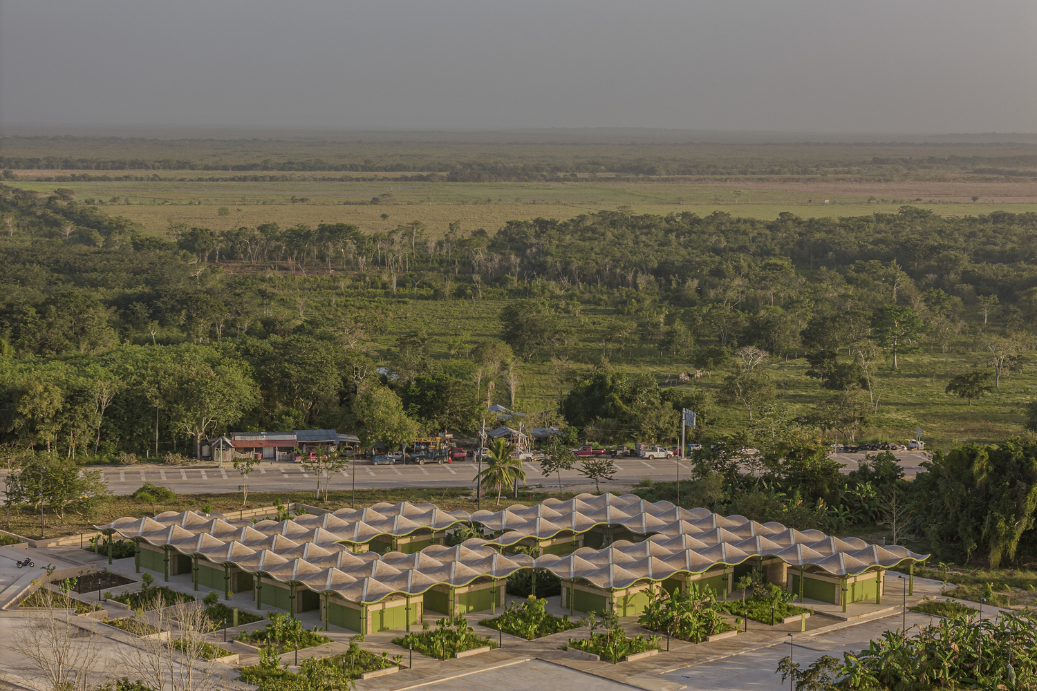 건물은 8m x 8m의 구조 그리드로 배열된 7,700㎡ 면적 위에 자리하며, 50개의 점포를 품는다. 시장의 중심에는 두 개의 푸른 중정이 놓여 있다.