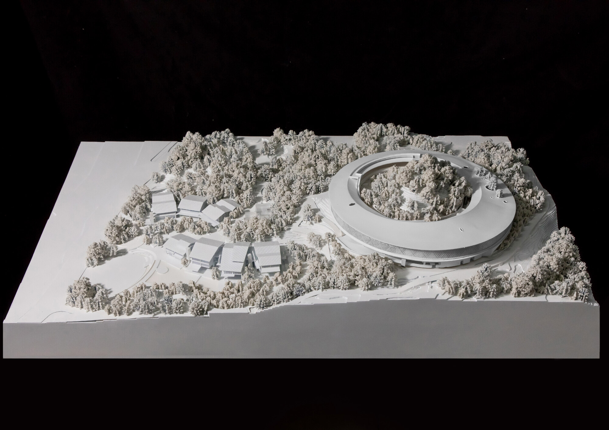 프로젝트 부지는 남쪽으로 완만하게 경사진 구릉지로, 풍부한 식생과 60미터의 고도 차이를 갖고 있다. 설계의 핵심 원칙은 기존 지형을 보존하면서 자연과 조화를 이루는 것이었다. 이에 따라 건축물은 땅을 파헤치는 방식이 아니라, 지형을 따라 흐르듯 배치되었다.