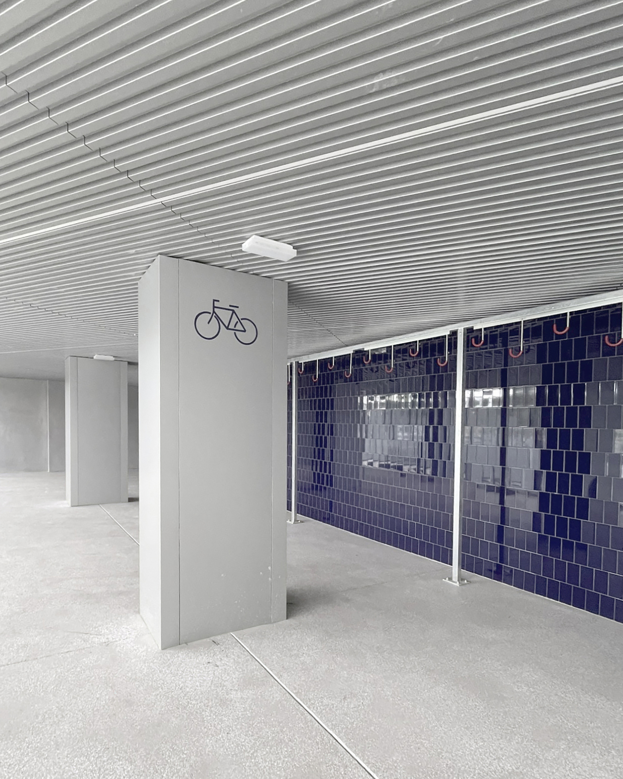 건물의 출입구는 외부와 내부를 자연스럽게 연결하는 필터 공간(filter space)으로 구성되며, 공공 광장과 건물 내부를 이어주는 전이 공간 역할을 합니다. 출입구를 지나면 네 개의 주요 현관이 있으며, 이 공간은 자전거 보관소와 우편함을 포함하여 거주자의 편의를 고려한 기능적 요소를 갖추고 있습니다.