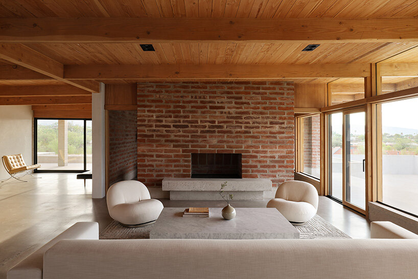 materials dialogue with the adobe and timber home
