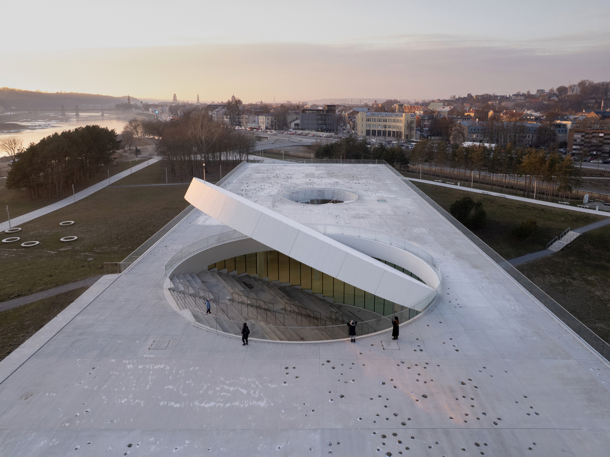 카우나스 네무나스 섬의 중심부에 들어선 과학섬 박물관 '모크슬로 살라'는 건축과 자연이 조화롭게 대화하는 새로운 문화 랜드마크다. 이 프로젝트는 단순한 전시 공간을 넘어 자연과 도시, 과학과 일상이 만나는 소통의 장을 창조한다. 마치 우리나라의 국립생태원이나 국립과천과학관이 자연과의 교감을 중시하는 것처럼, 이 건물 역시 환경과의 유기적 관계를 중심에 두고 있다.
