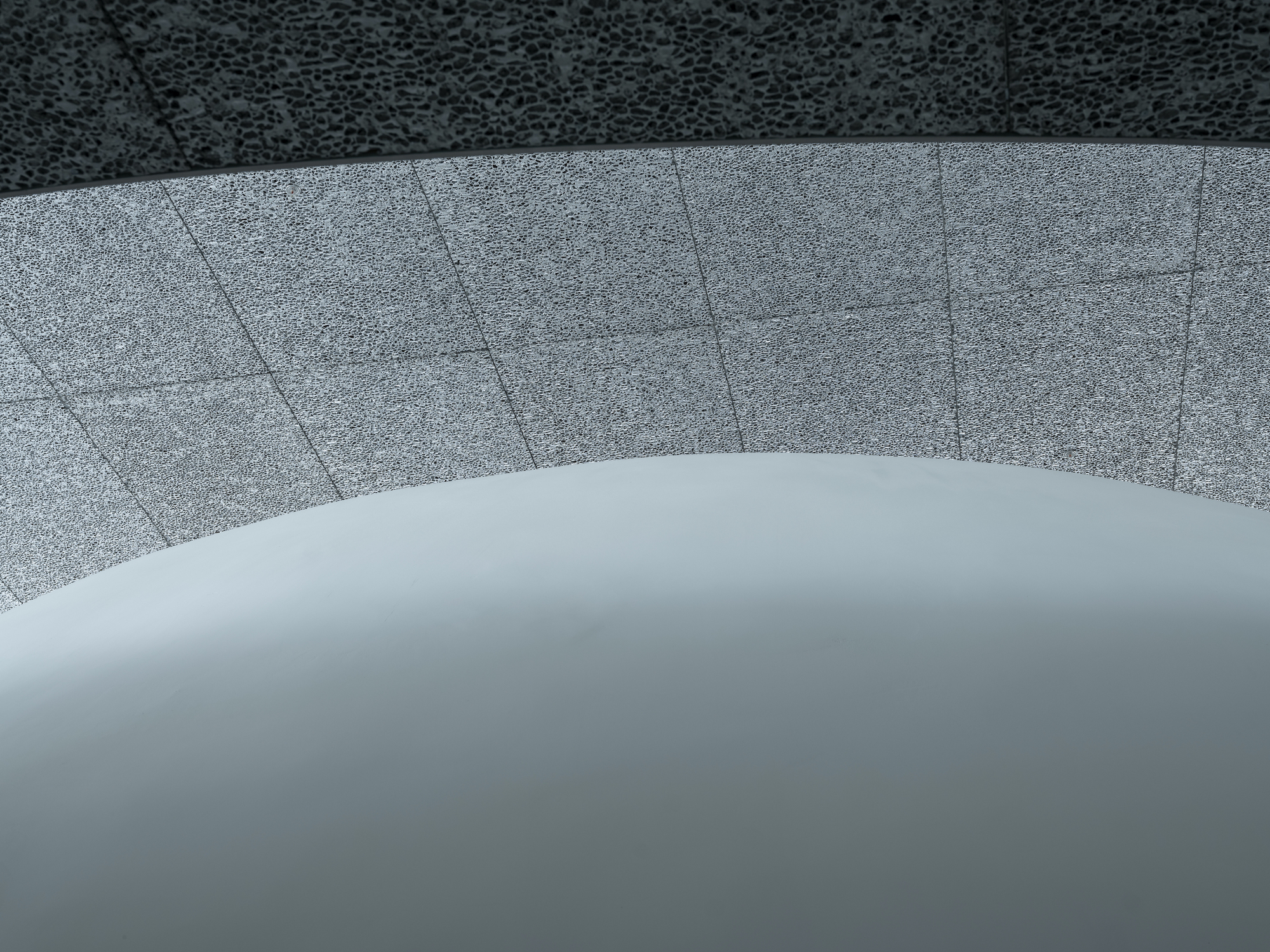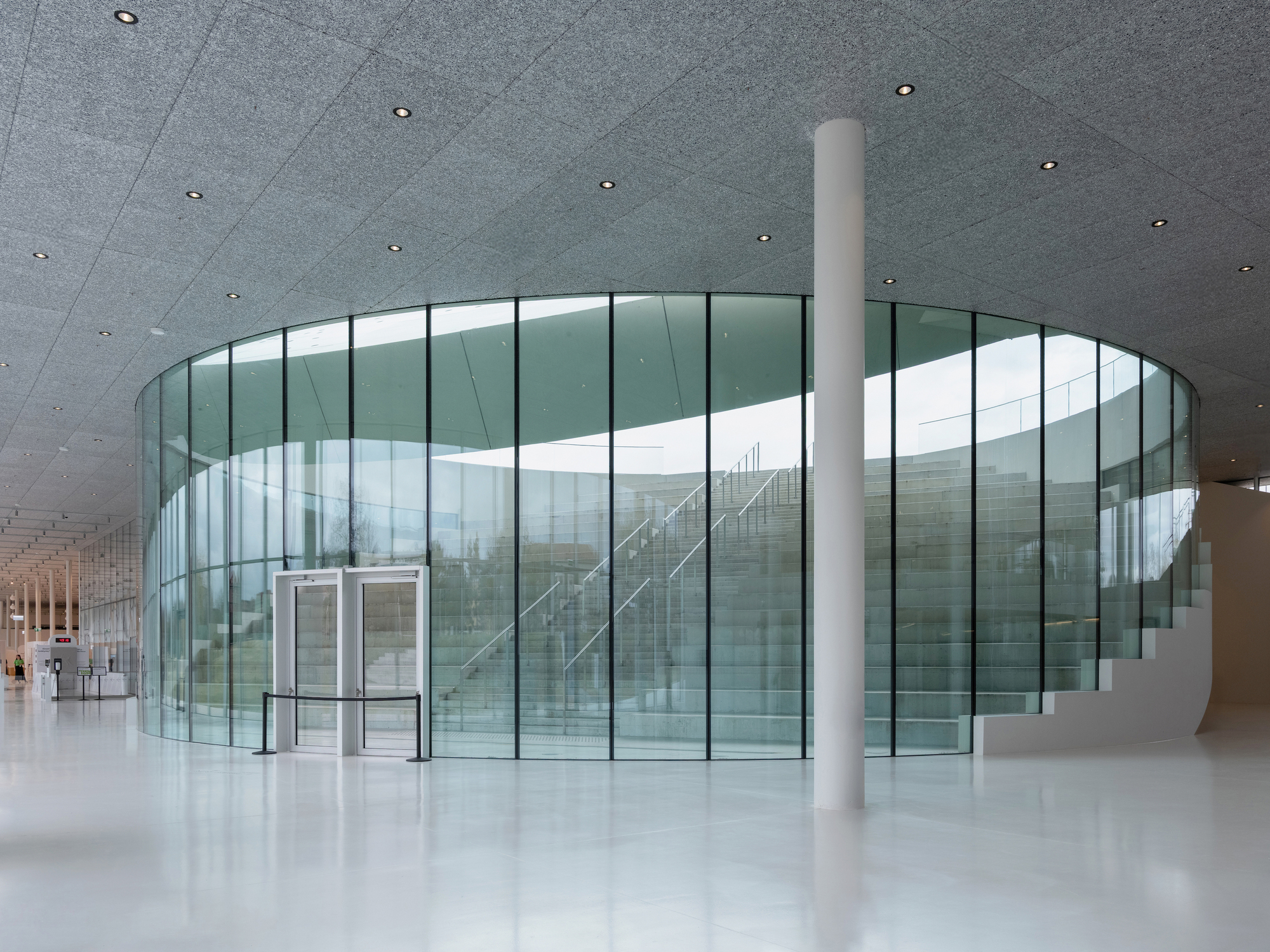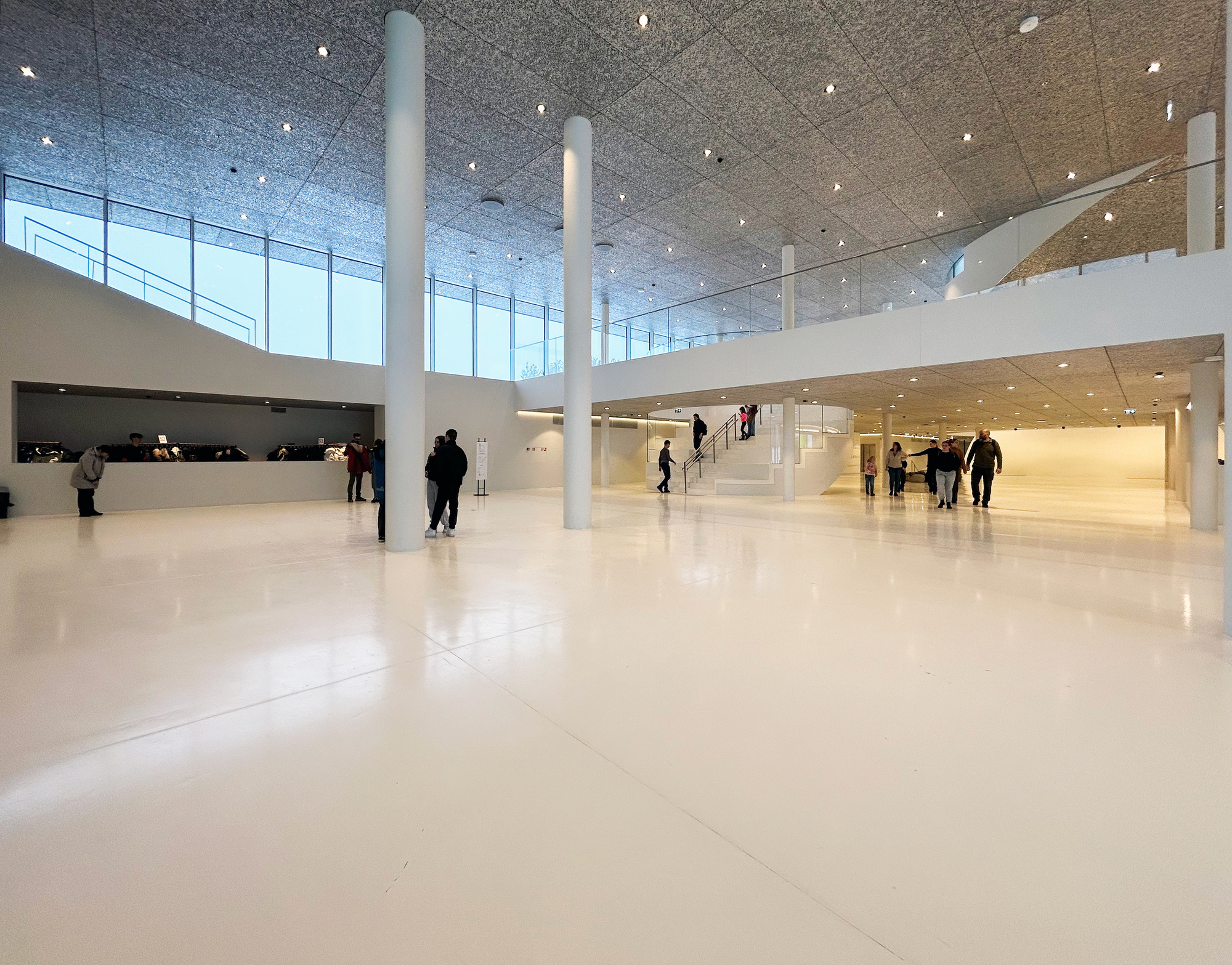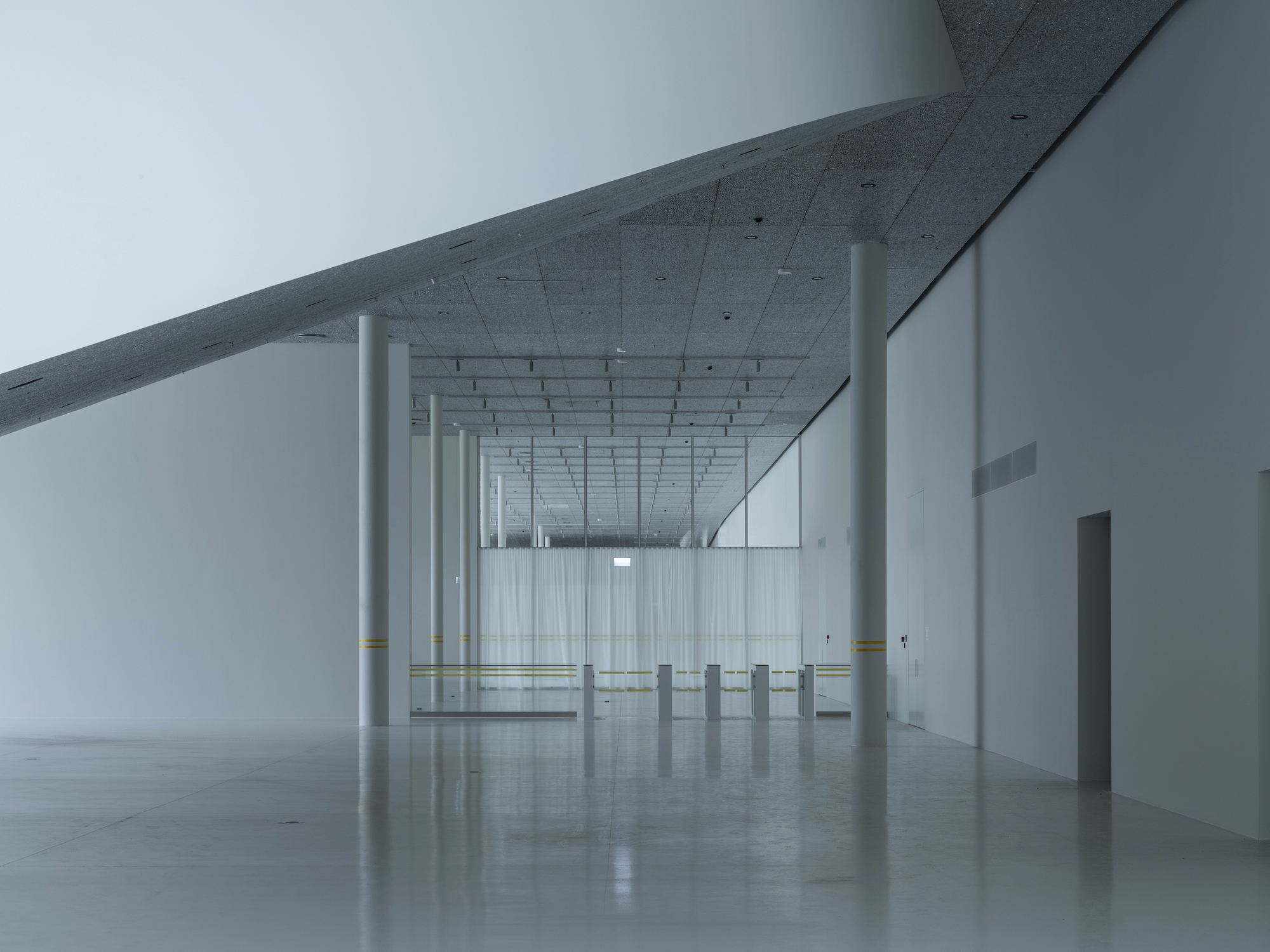 건물 내부는 마치 우리나라 국립현대미술관 서울관의 중정이 외부와 소통하듯, 끊임없이 외부 환경과 교감한다. 흰색 바닥과 벽, 그리고 질감이 살아있는 천장 마감재는 빛과 그림자의 변화를 섬세하게 담아내는 캔버스 역할을 한다. 내부 공간의 유려한 곡선과 기둥의 배치는 시각적 개방감을 극대화하면서도 동선을 자연스럽게 유도한다.