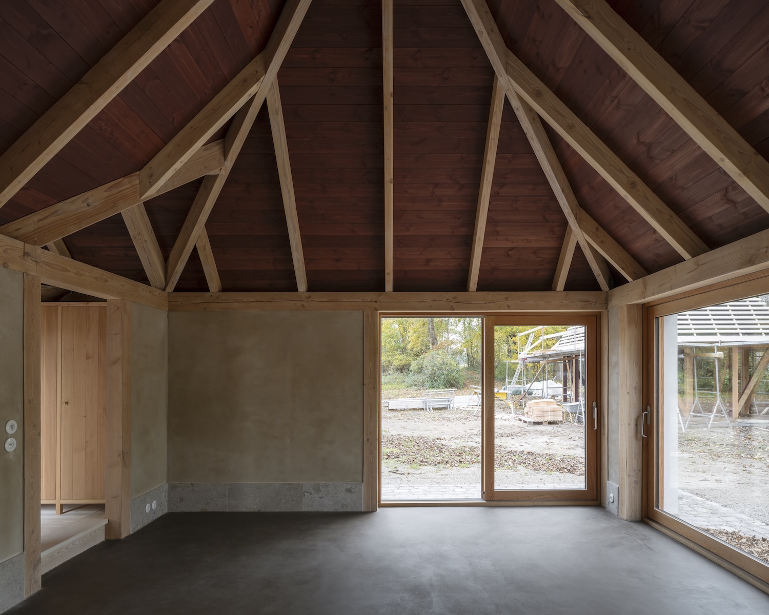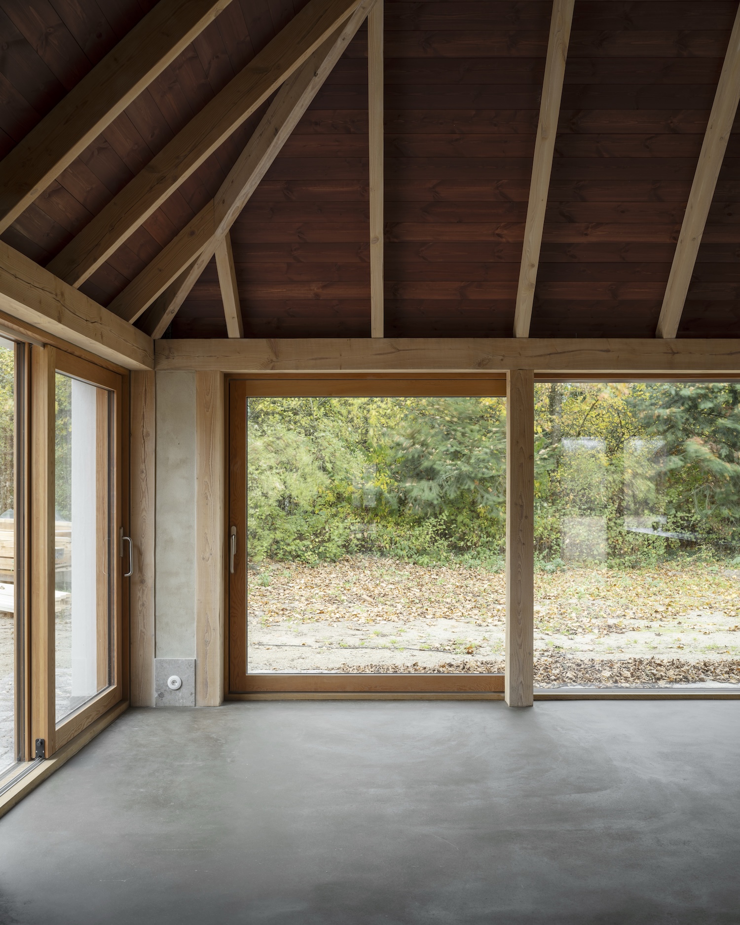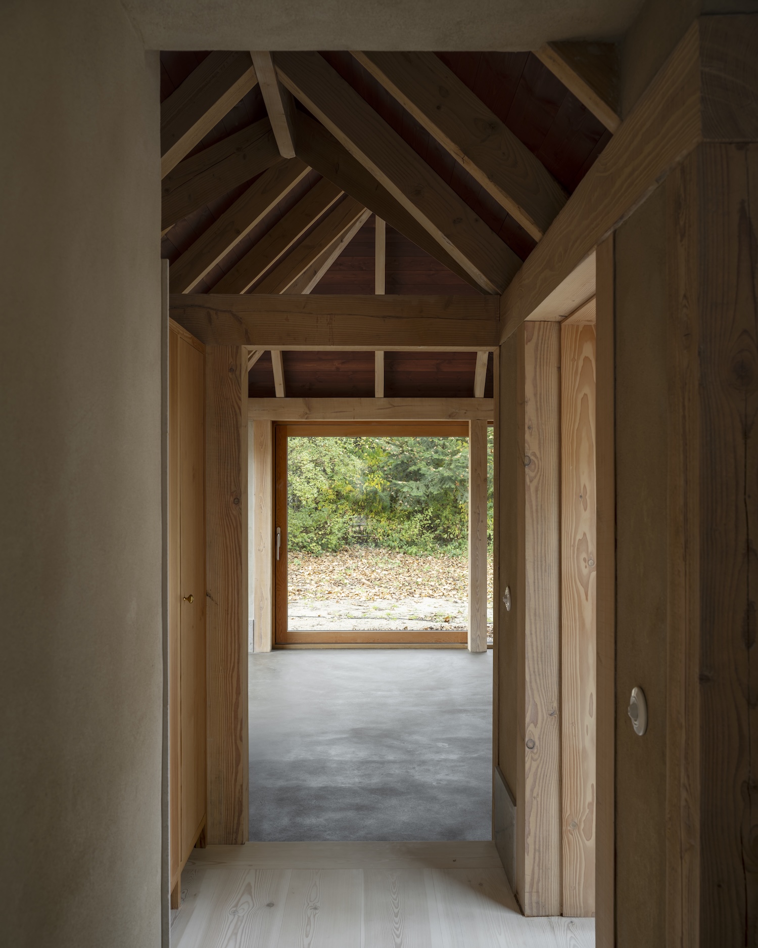 이 '잘 만들기'의 철학은 단순한 리노베이션을 훨씬 더 깊은 의미를 지닌 프로젝트로 변화시켰다. 기존 학교 건물은 정성 어린 보존 과정을 거치고, 옛 차고는 석회 콘크리트 기초 위에 새로운 내부 목재 프레임을 얹었다. 이는 이 지역의 전통적인 '빈딩스베르크(반목조 건축 양식)'를 현대적으로 재해석한 결과물이다.