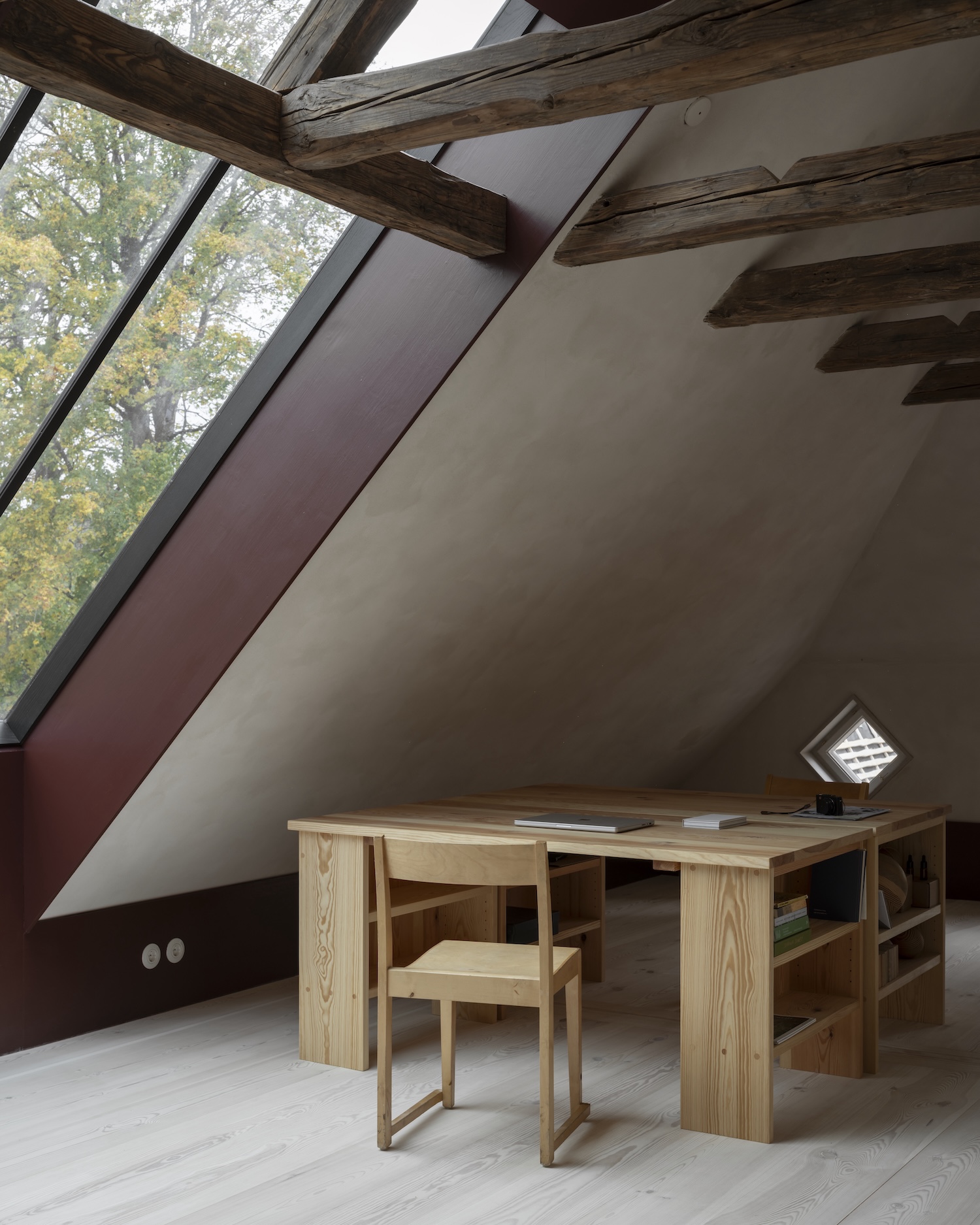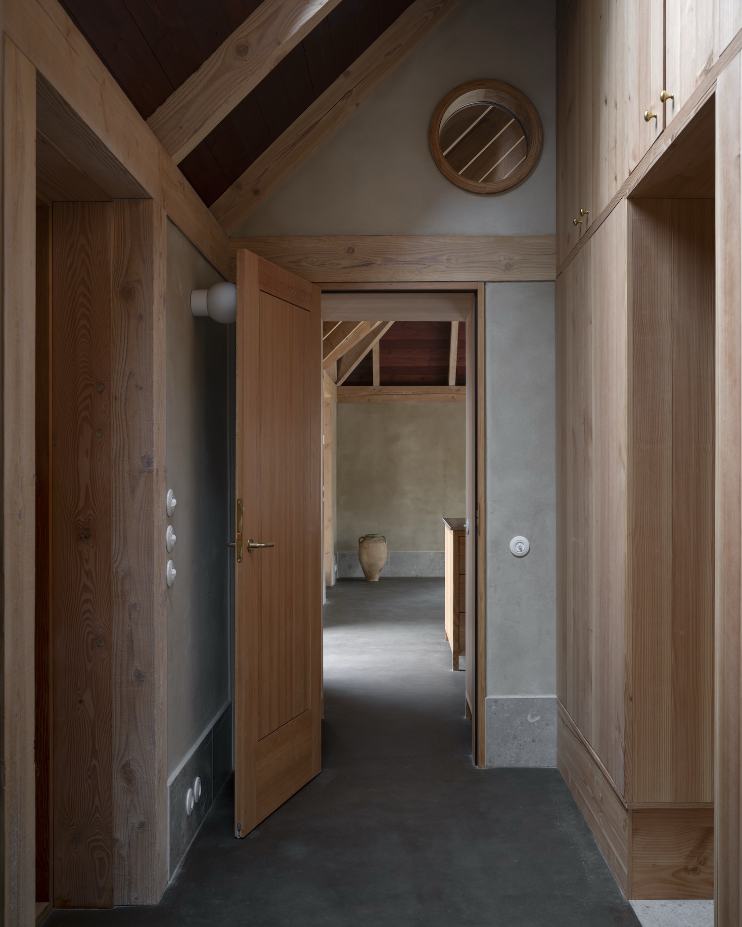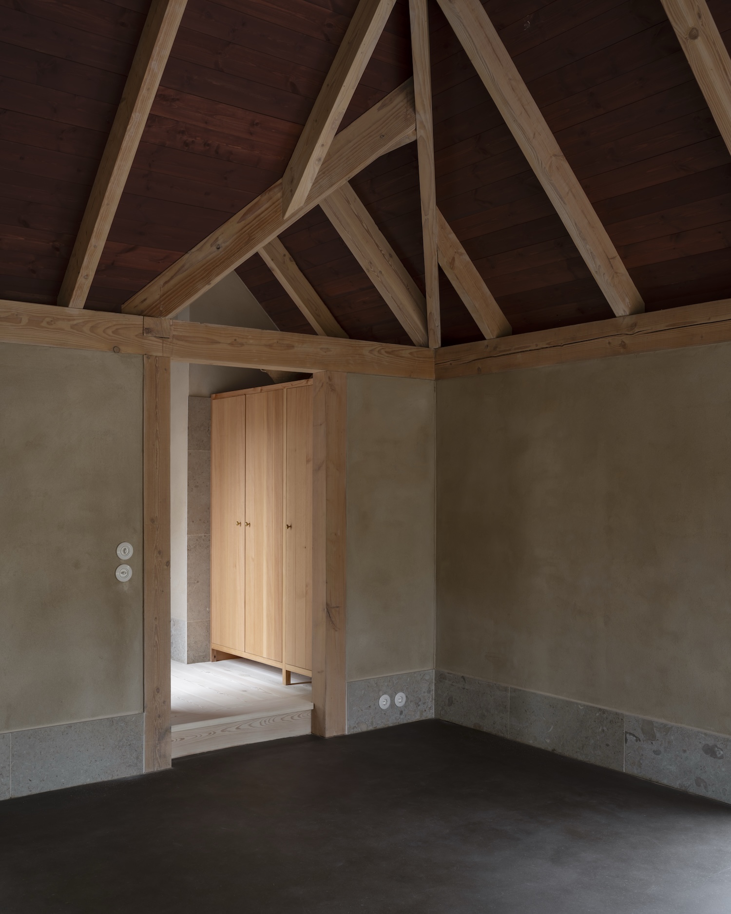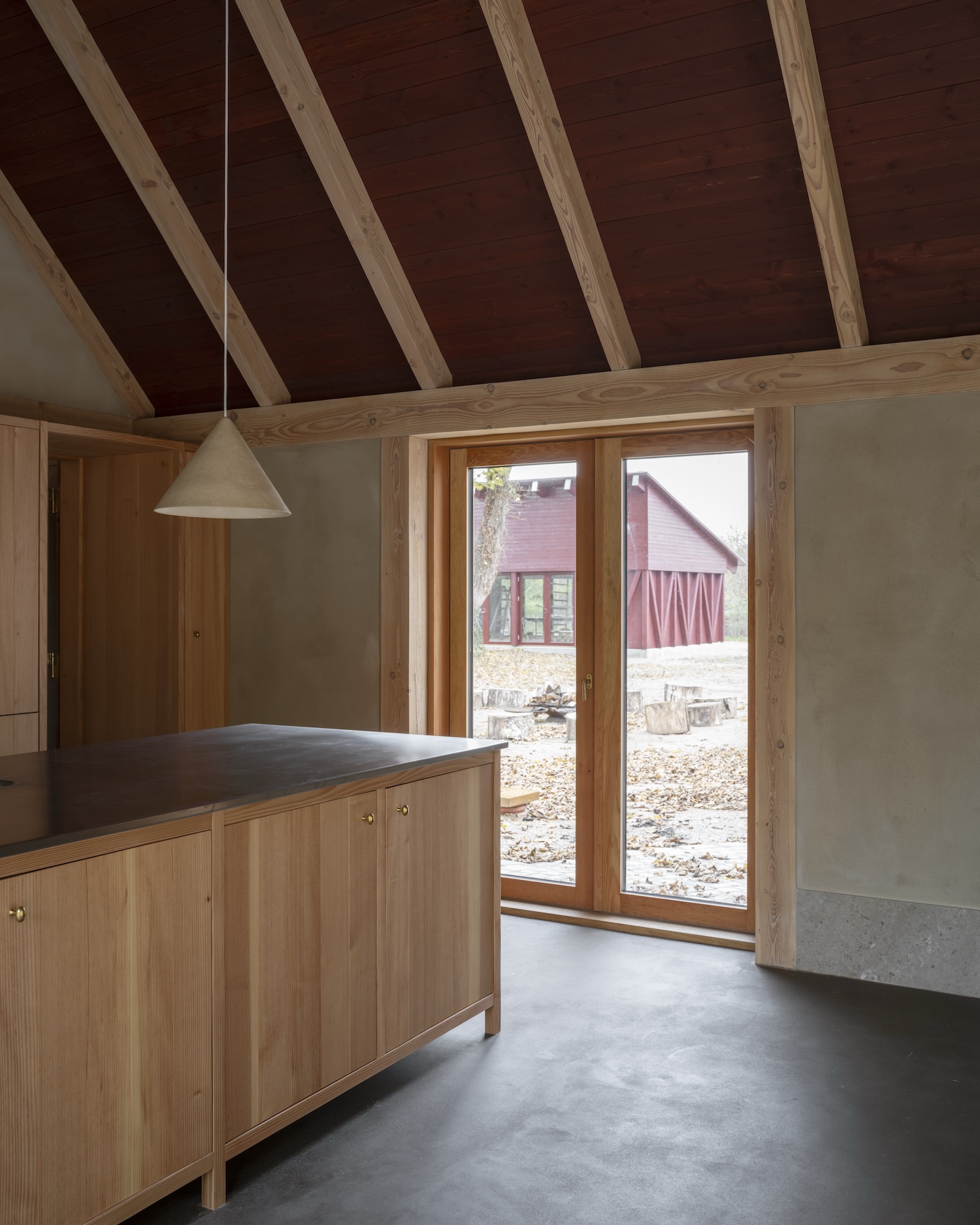 이 '잘 만들기'의 철학은 단순한 리노베이션을 훨씬 더 깊은 의미를 지닌 프로젝트로 변화시켰다. 기존 학교 건물은 정성 어린 보존 과정을 거치고, 옛 차고는 석회 콘크리트 기초 위에 새로운 내부 목재 프레임을 얹었다. 이는 이 지역의 전통적인 '빈딩스베르크(반목조 건축 양식)'를 현대적으로 재해석한 결과물이다.