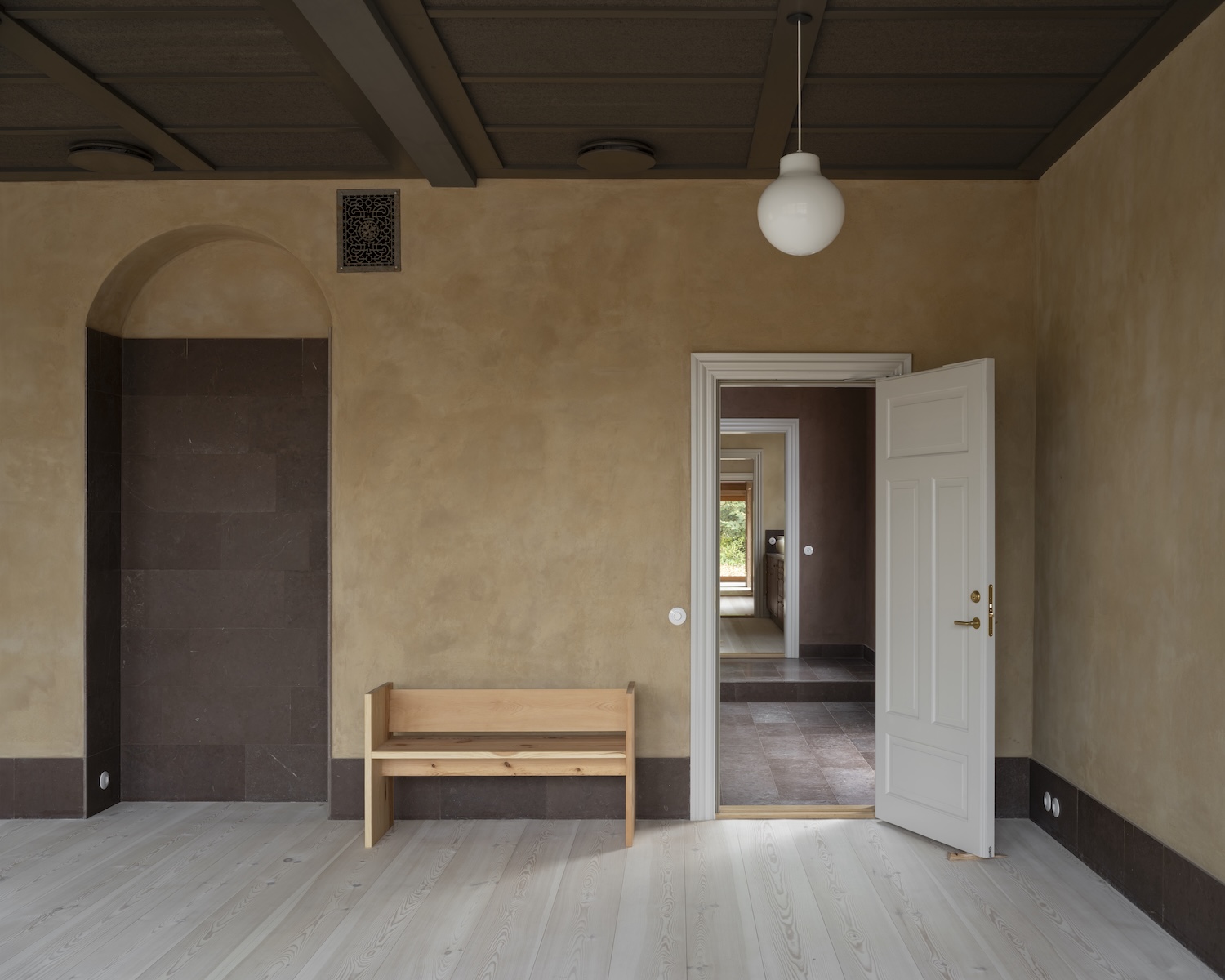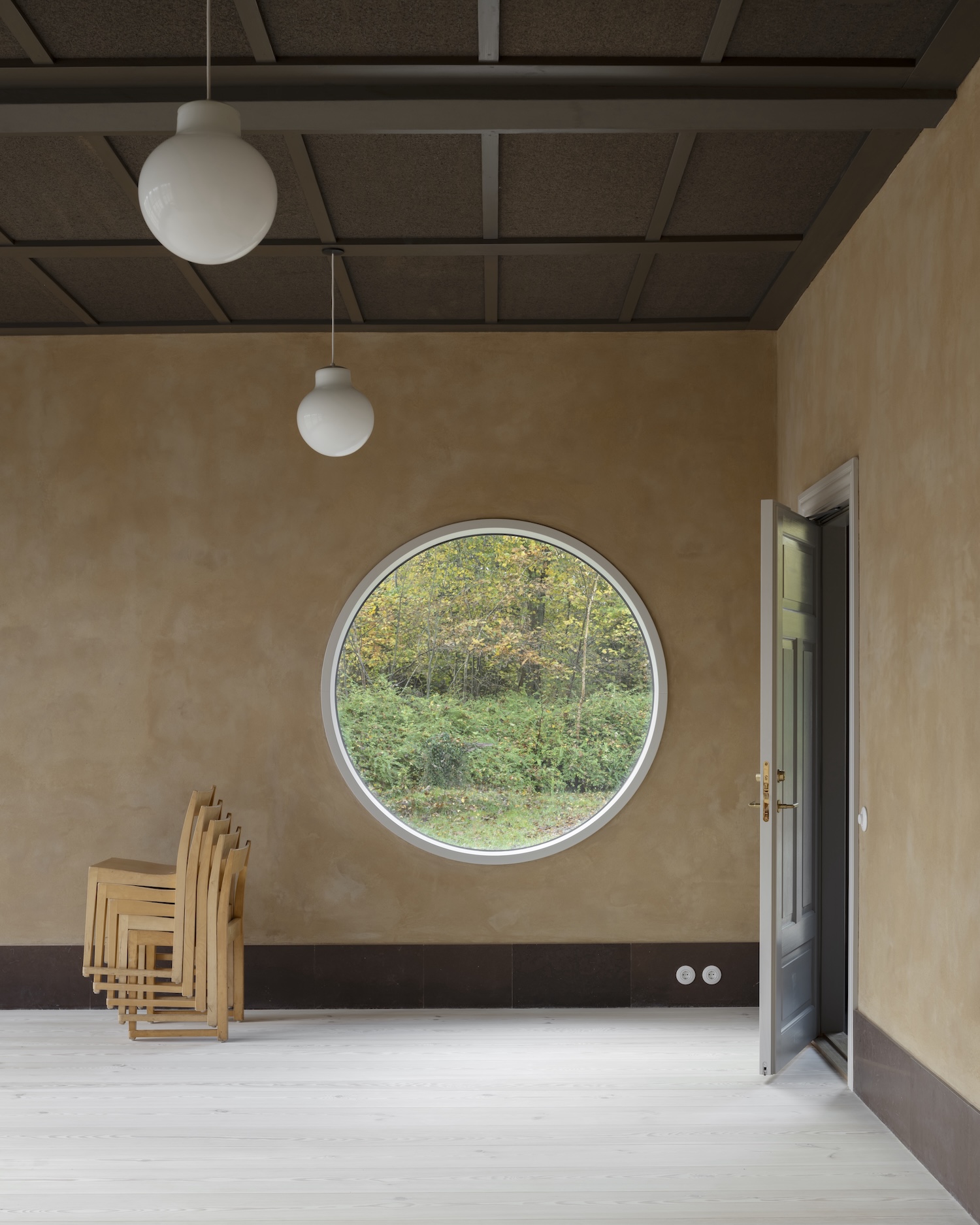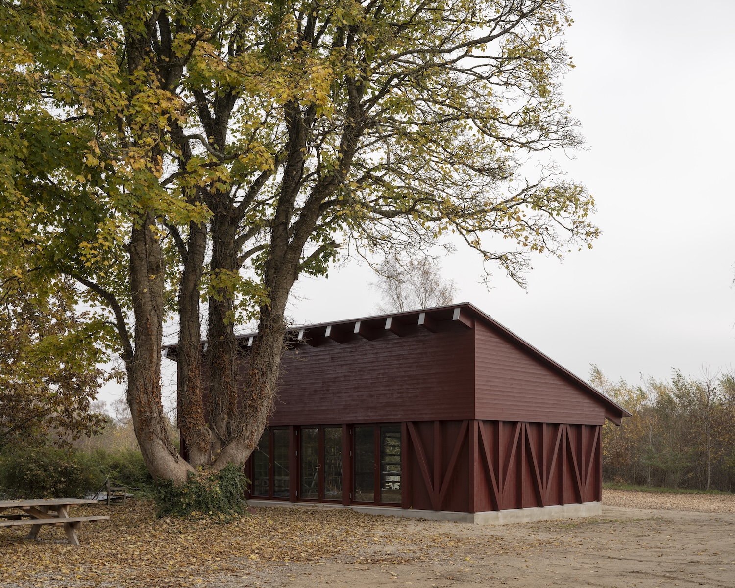 Hedeskov Center for Regenerative Practice is minimalist architecture project located in Djursland, Denmark, designed by Djernes & Bell. What immediately strikes the visitor is the building’s clay finish a geological autobiography rendered in earthy hues that map directly to core samples taken from the site itself. This isn’t decoration; it’s a material manifesto. Each pigmented layer tells the story of what lies beneath, connecting interior space to the geological time embedded in the landscape.