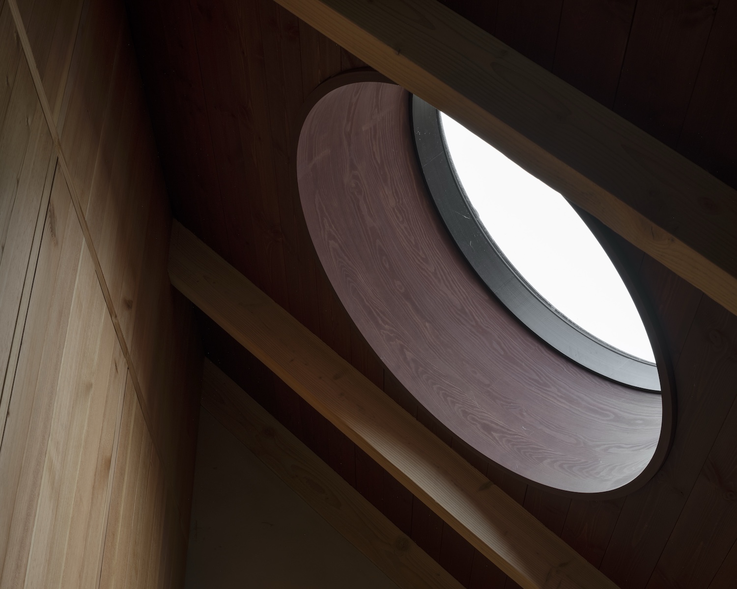 내부로 들어서면 목재 구조체가 눈에 띈다. 천장의 목재 보와 기둥은 구조적 기능을 넘어 공간에 따스함과 리듬감을 더한다. 한국의 전통 한옥에서 느껴지는 것과 유사한 목구조의 미학이 현대적 공간과 조화를 이룬다.
