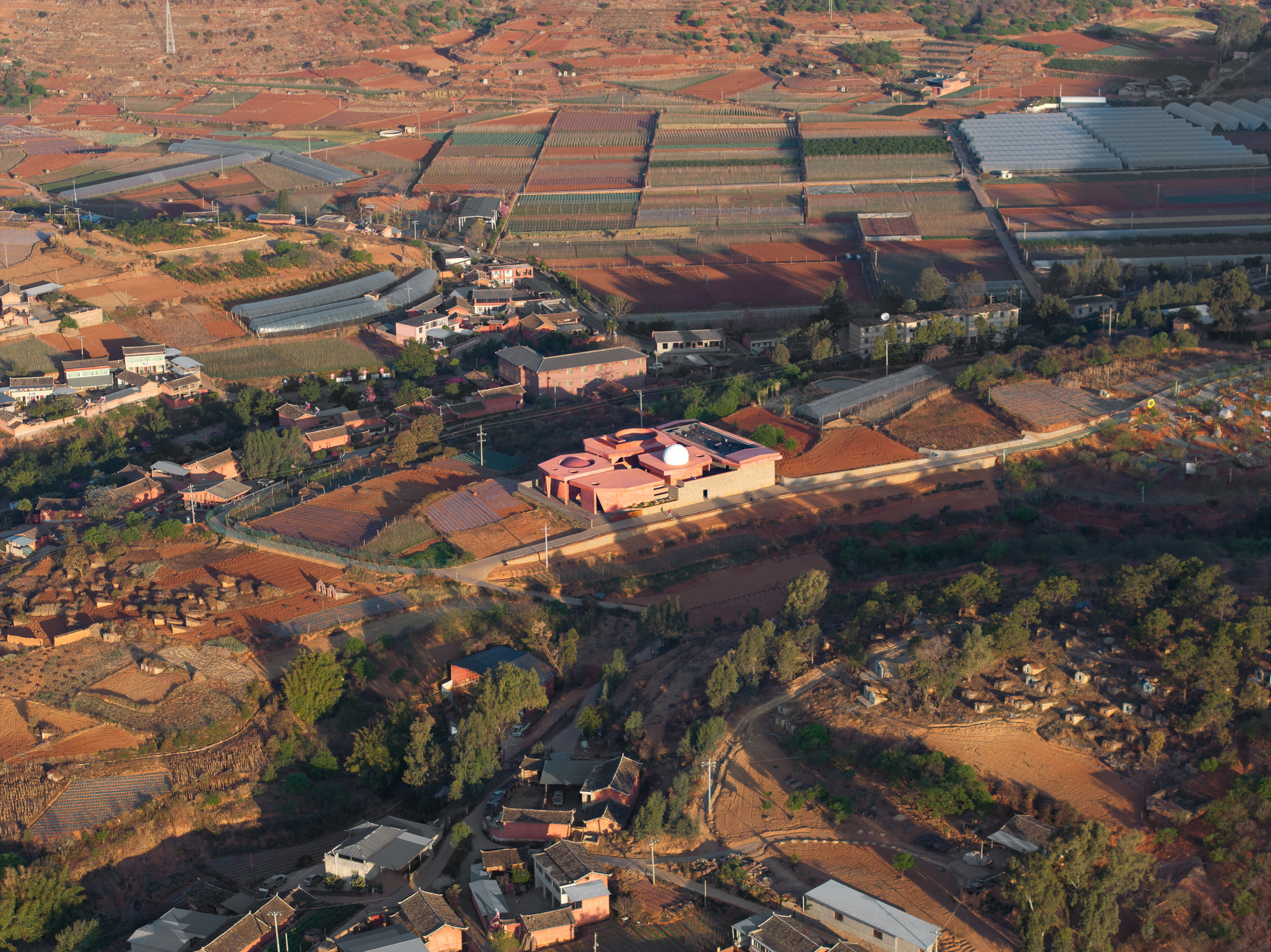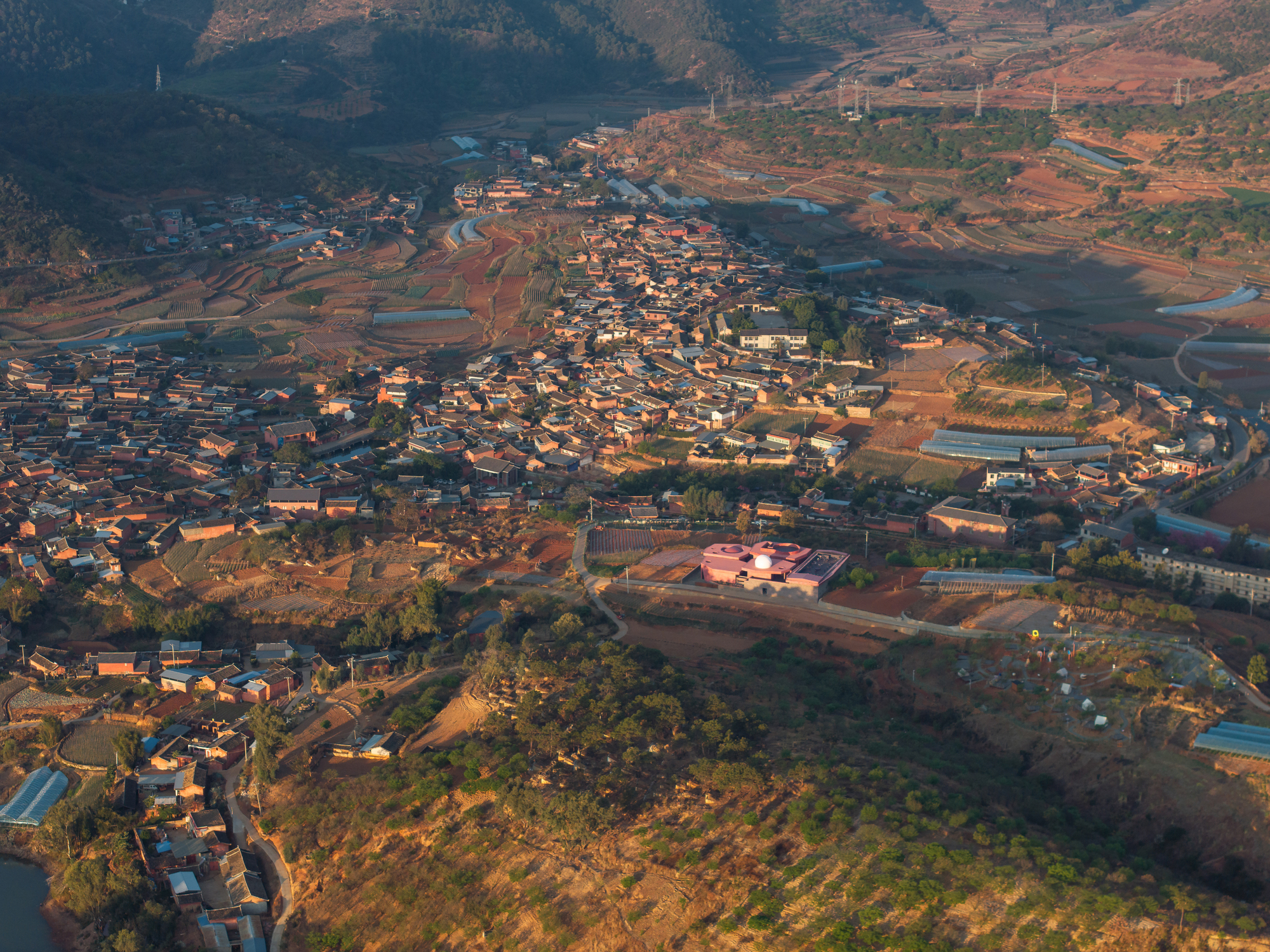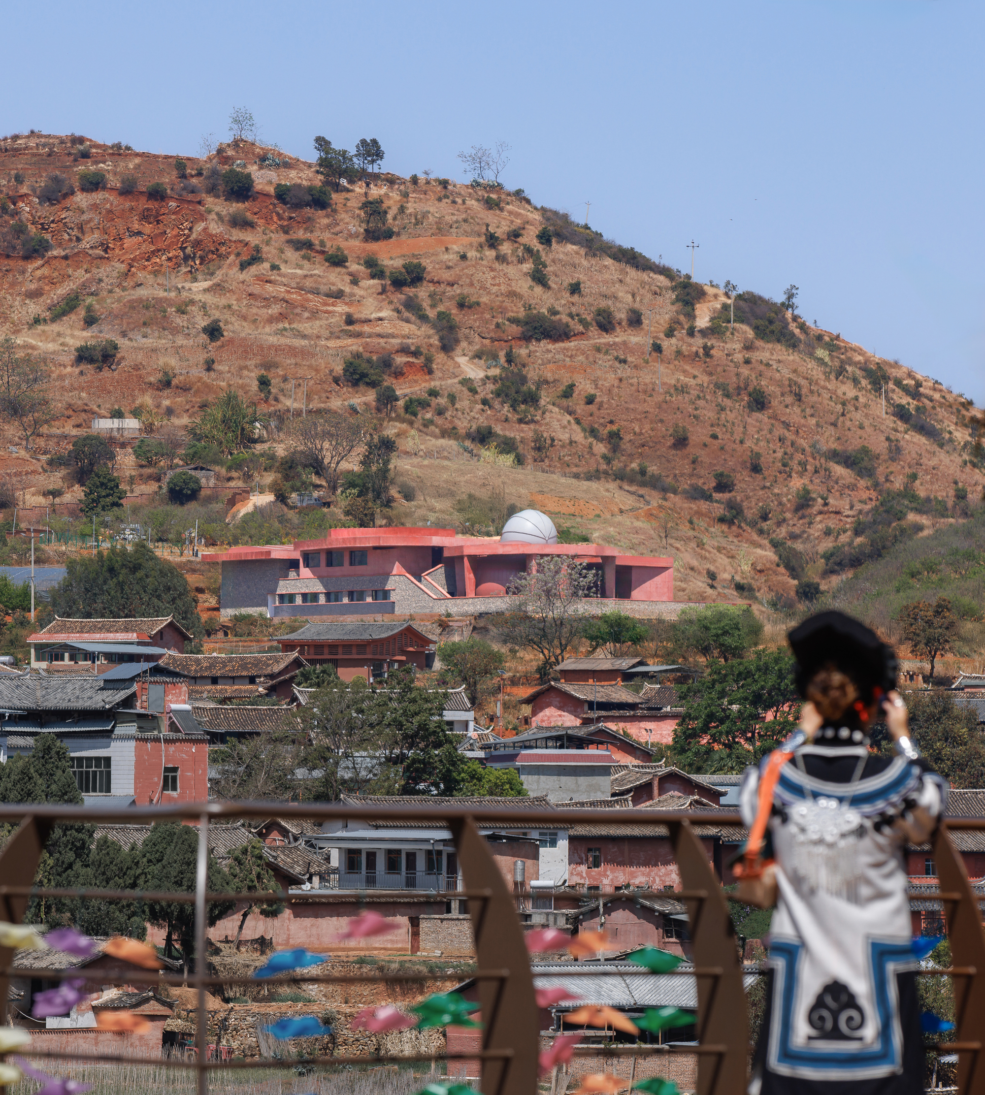 New Growth of Red Village Outside Yishala Village are layers of terraced fields piled up with cobblestones, and inside the village are courtyard dwellings built according to the envelope of the mountains. The intense sunlight in the Panxi Valley passes through the gaps between the roofs, casting distinct geometric light and shadows in the narrow, winding, and undulating village alleys. This is the first visual impression upon entering Yishala, and it serves as the design prototype for the observatory space. Firstly, the design compresses and "backfills" the auxiliary spaces, and restores the height differences of the mountainous terrain in the environment by steps. Then, the functions are disassembled into four small-scale units distributed in a staggered pattern. These units are connected in series through stairs, corridors, and bridges, translating the vivid charm of tradition with modern architectural language.