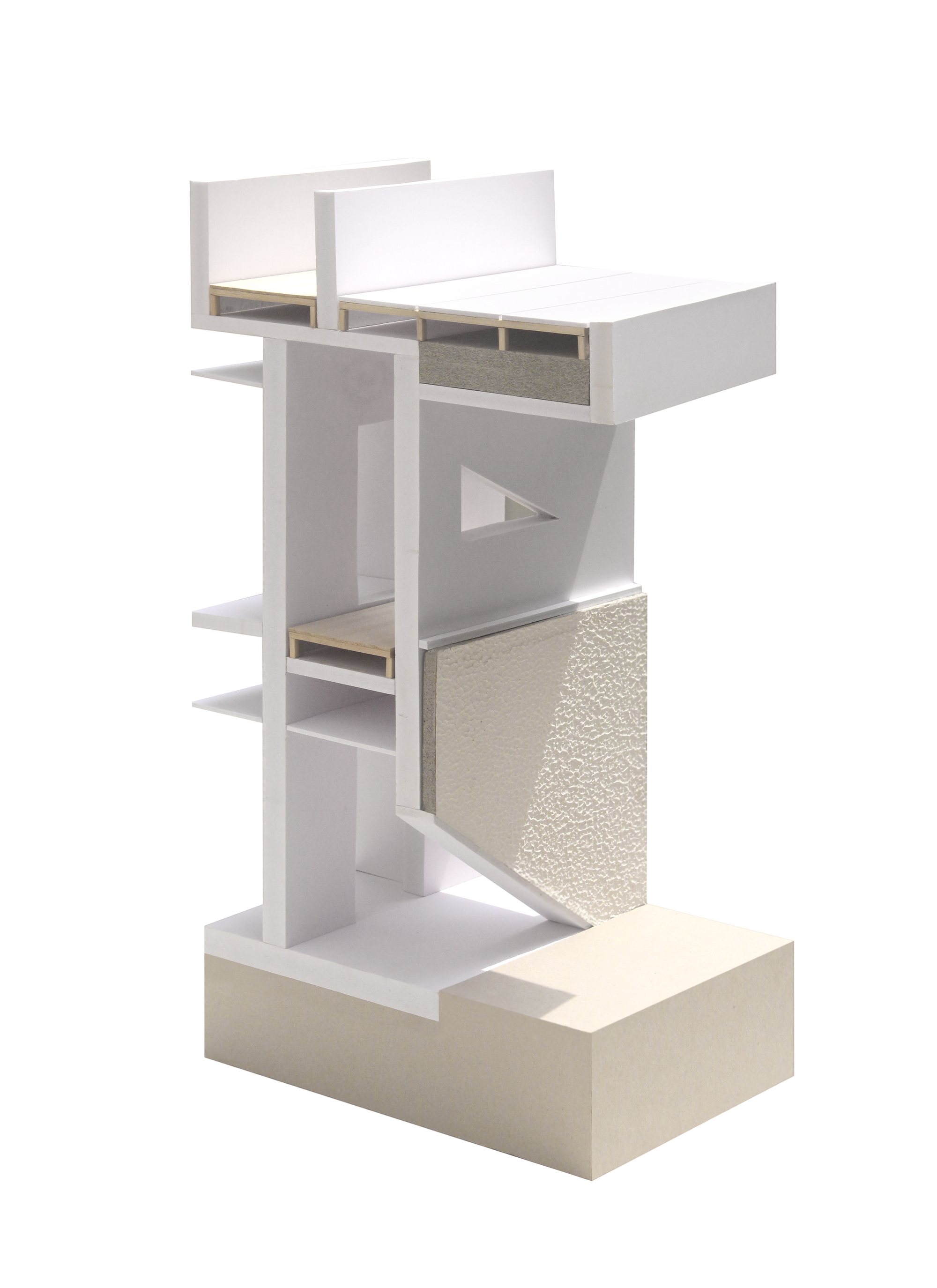 Sunlight is Material -The concrete walls on the facade of the observatory are the perfect canvas for sunlight. The roofs overhang irregularly outward. Through the angular misalignment between the roof and the wall, a sharp shadow forms on the facade. The roofs are horizontally separated from each other forming gaps, and then the gaps are vertically extended by taking advantage of the space height differences. The light bands outlined by the gaps are projected onto the walls and floors, and their shapes change as time passes.