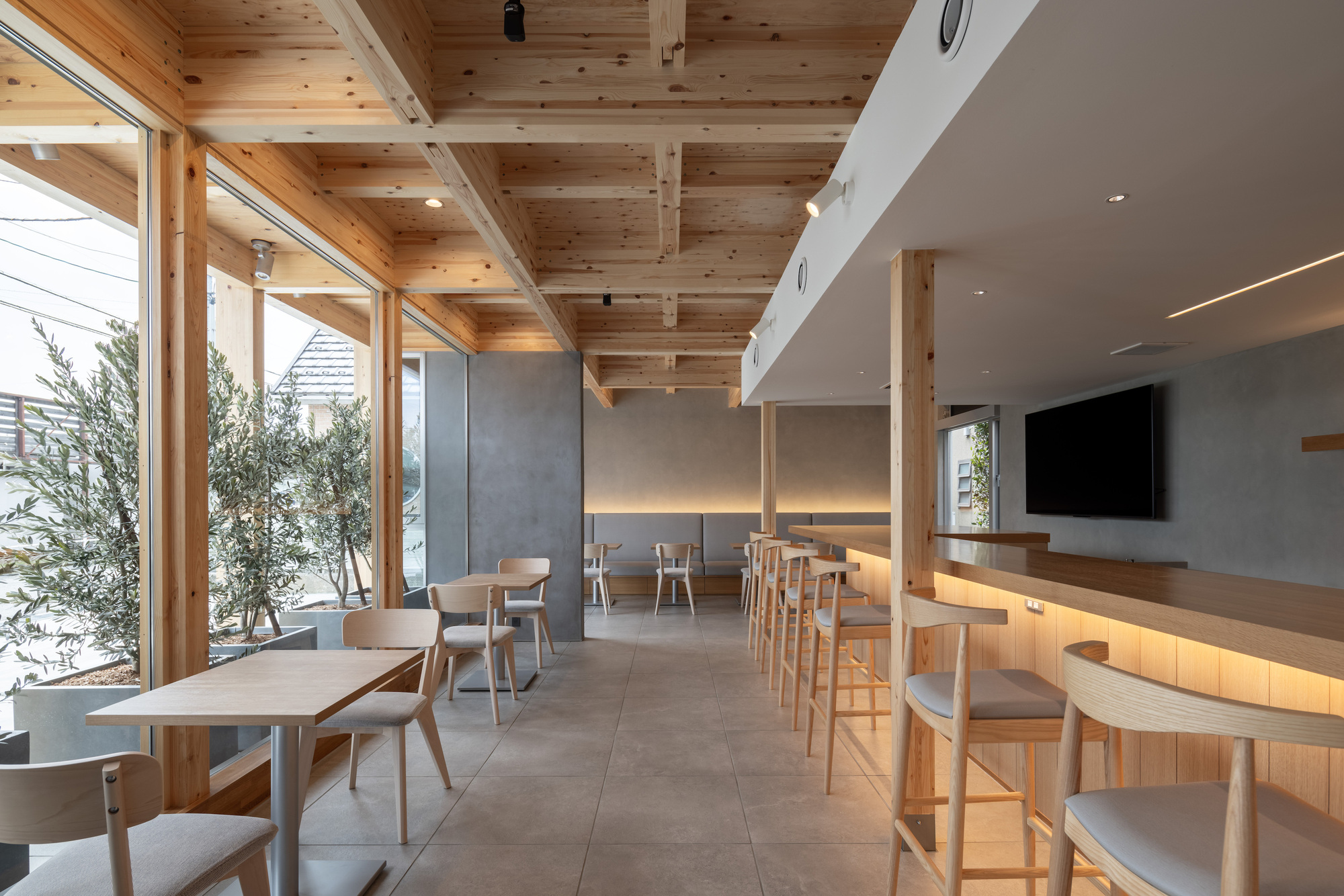 도시의 숲을 품은 카페: 자연과 건축의 공존을 말하다. Kazuto Nishi Architects + toitdesign-Café with a Large Tree in the Middle of Town