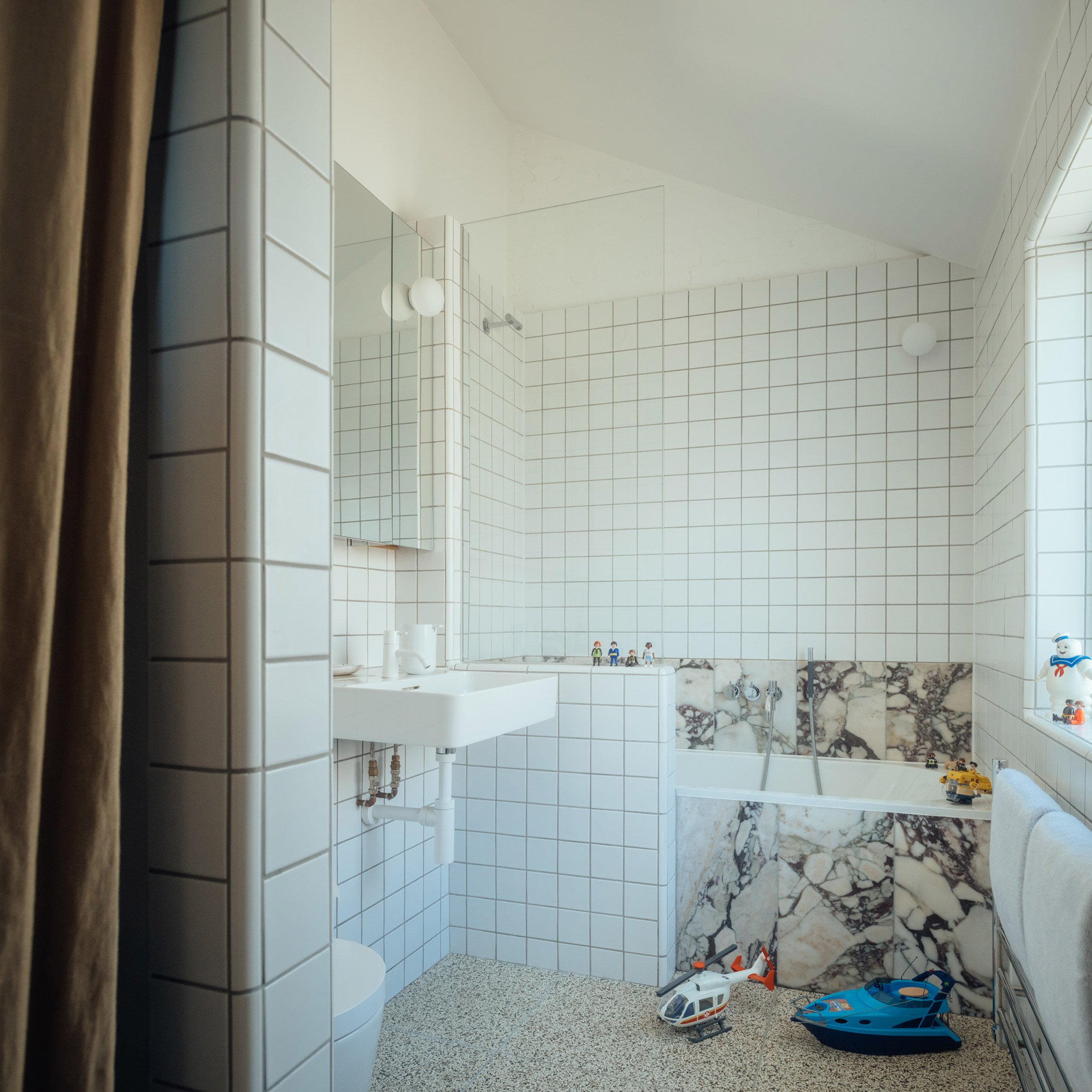 "우리는 원래 주택이 지어진 몇 가지 재료인 벽돌, 콘크리트, 아연도금 강철, 연목만을 엄격하게 따랐습니다"라고 햅시만은 강조한다. "모든 새로운 요소는 이러한 재료 중 하나로만 제작되었습니다."