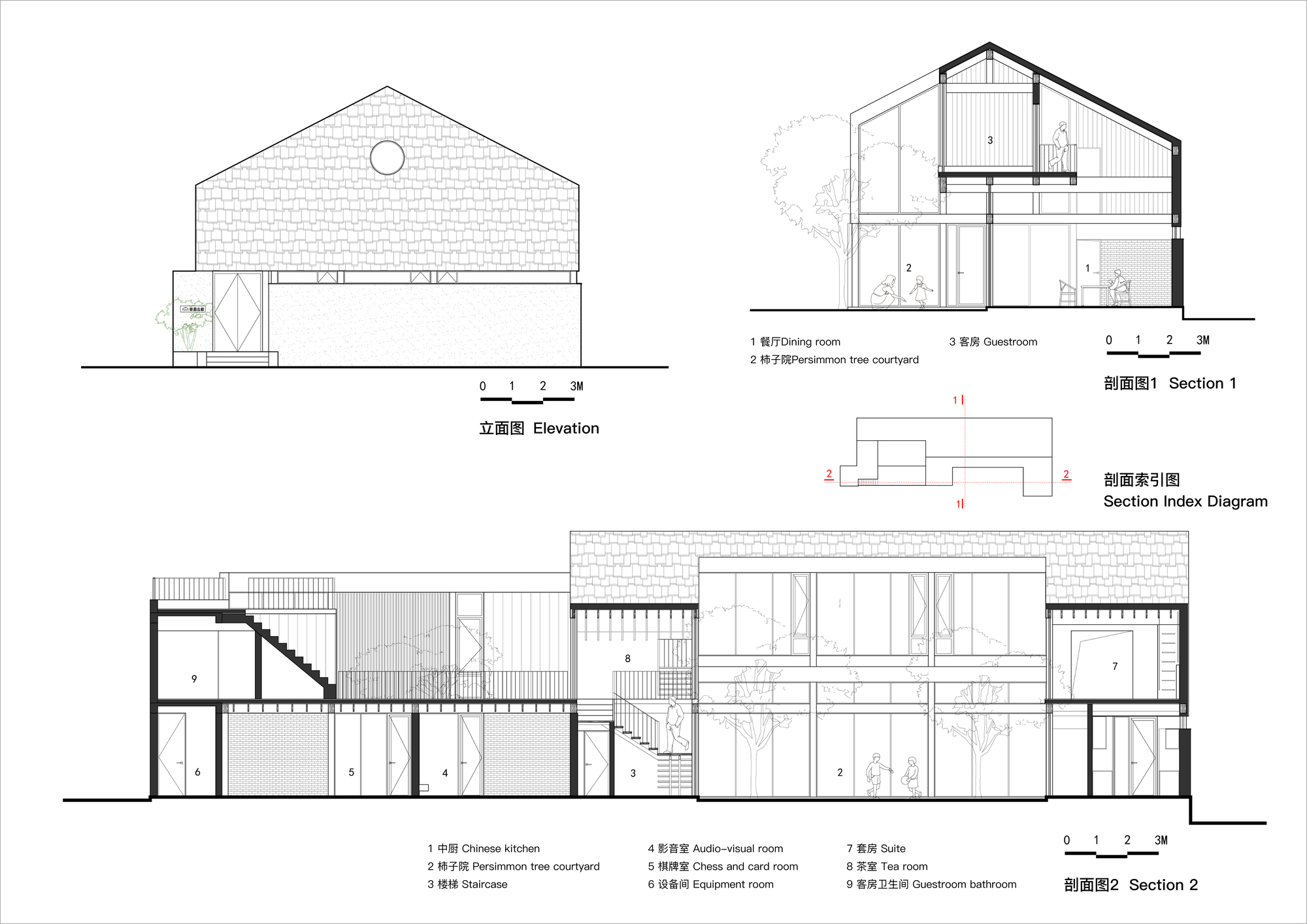 프로젝트 초기부터 집주인은 명확한 방향성을 제시했습니다. 새 건물은 홈스테이로 운영될 것이며, 최소 7개의 객실이 필요하고, 그중 하나는 어머니를 위한 공간으로 마련될 것입니다. 단체 여행객과 개인 손님 모두를 위한 공간으로서 중식과 양식 주방, 식당, 거실, 휴게실, 그리고 노인들을 위한 바둑과 카드 놀이방까지 갖추어야 했습니다. 이러한 다양한 요구사항을 충족하기 위해, 새 건물은 기존 구조물 면적의 약 두 배가 필요했습니다.