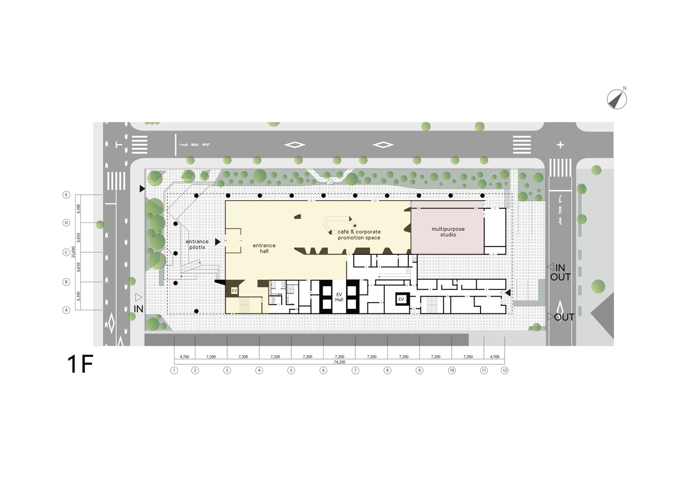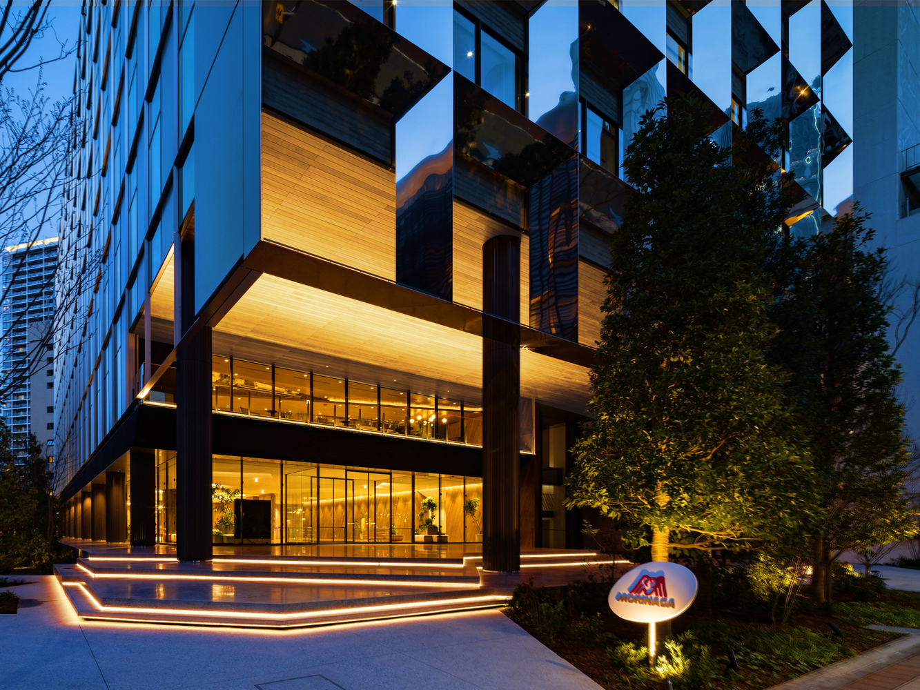 Furthermore, we tried to work on the health of mind and body by installing the fluctuations of nature into the spaces. The mirrored facade was designed to reflect the green and sky of the landscape. It also functions as a wind catcher to provide natural ventilation for infectious disease control, and a sunlight controller to bring the brightness of sunlight into the space while reducing heat load. The color temperature of the exterior lighting is interlocked by the actual temperature and changes softly, and some interior lightings are shaken and flickers by interlocking with the external wind speed sensor and making the shadows of the interior plants sway.