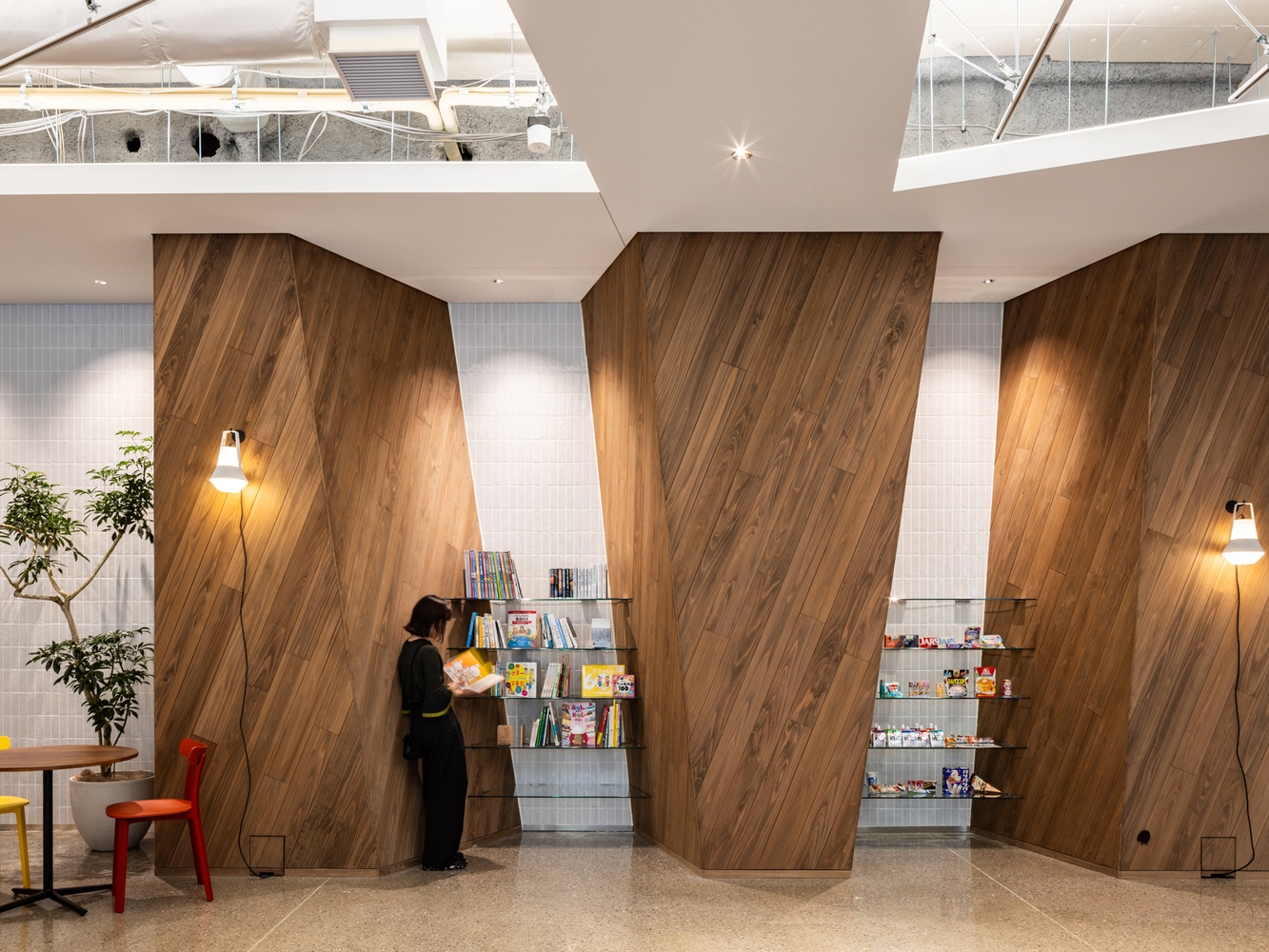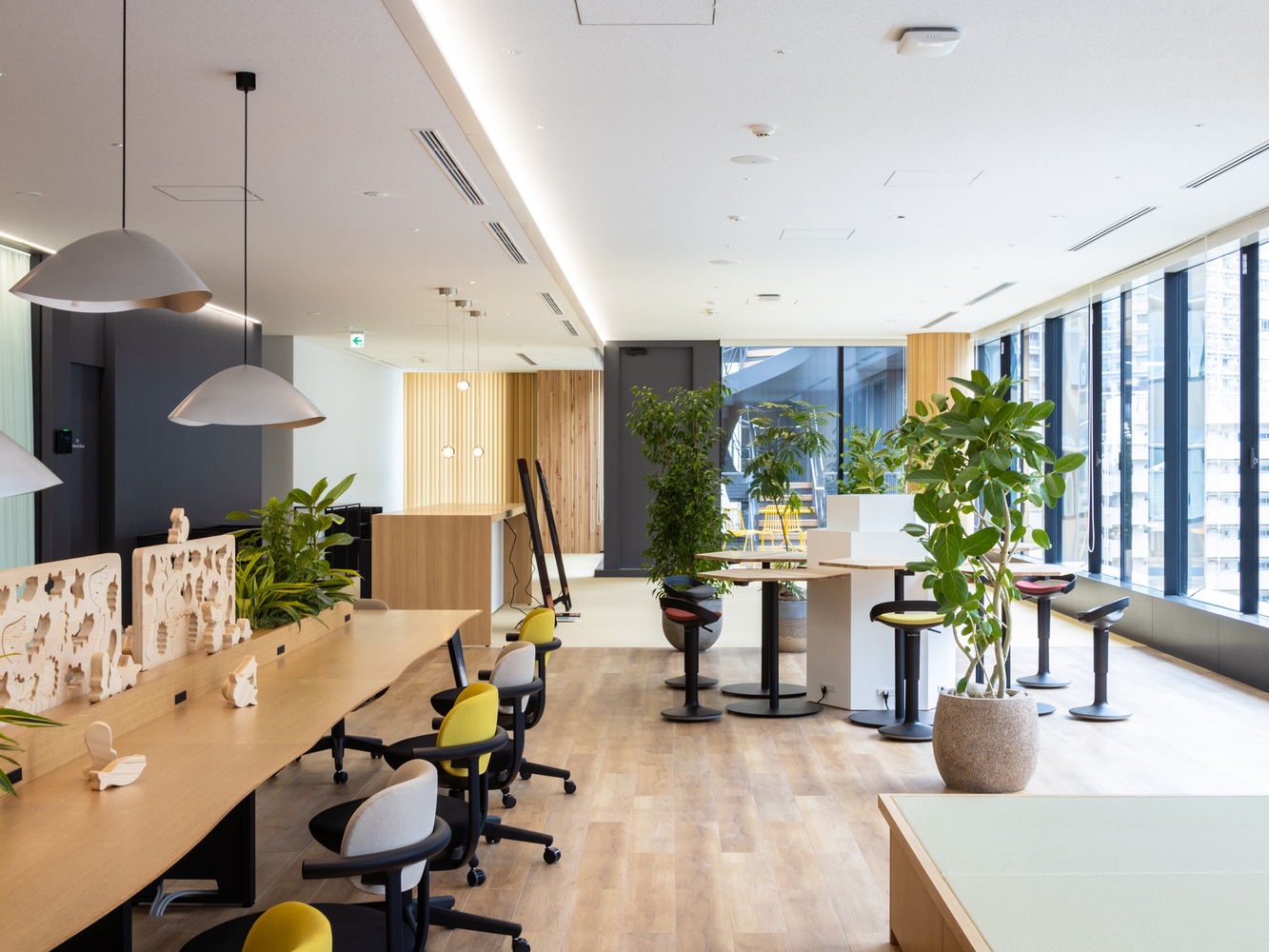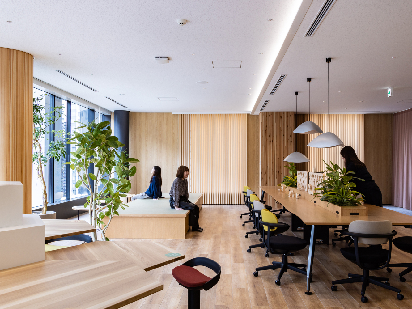 This project was designed for the office of a confectionery and food manufacturing company. The client's vision is to contribute to the realization of a sustainable world by providing wellness of mind, body, and environment to their customers, employees, and society. As a base for realizing their perspective, we designed their new office as the city's forest, where many species coexist, and named it "KAKUHAN-no Mori," which means "the forest of mixing." Our ideal place was one where diverse nature and people inside and outside the company could mutually influence each other and expand their world, like mixing ingredients to make sweets and enjoying together.