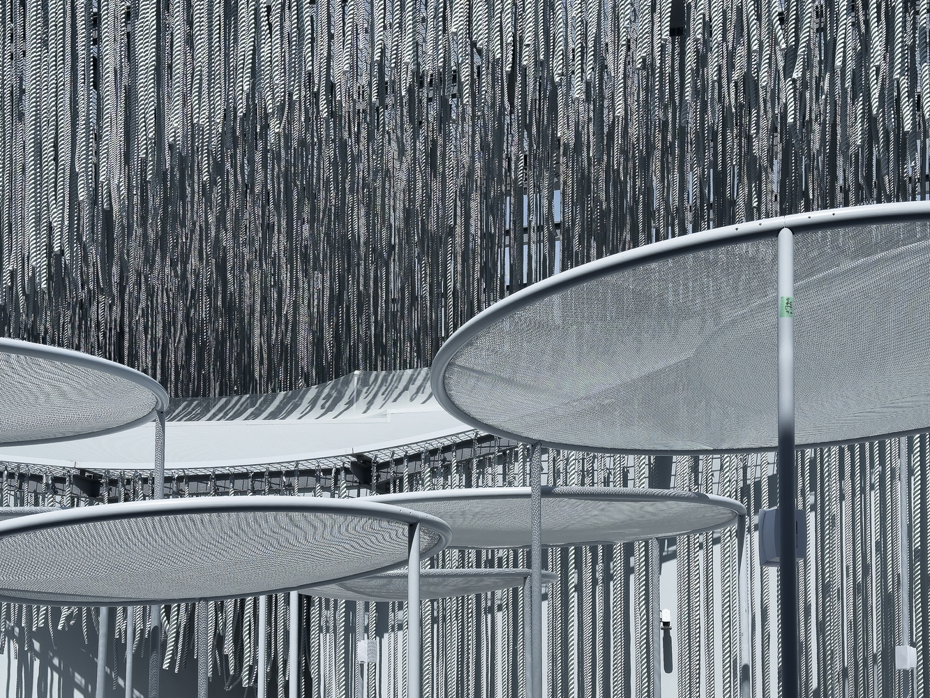 일본 건축에서 흔히 볼 수 있는 '간(間)' 개념처럼, 이 파빌리온은 비어있는 공간과 그 사이의 관계성을 중시합니다. 로프 사이의 빈 공간은 단순한 '없음'이 아니라, 빛과 바람, 시선이 오가는 활발한 교류의 장이 됩니다. 이는 한국 전통 건축의 '처마' 아래 그늘이 만들어내는 반투명한 경계와도 맥을 같이합니다.