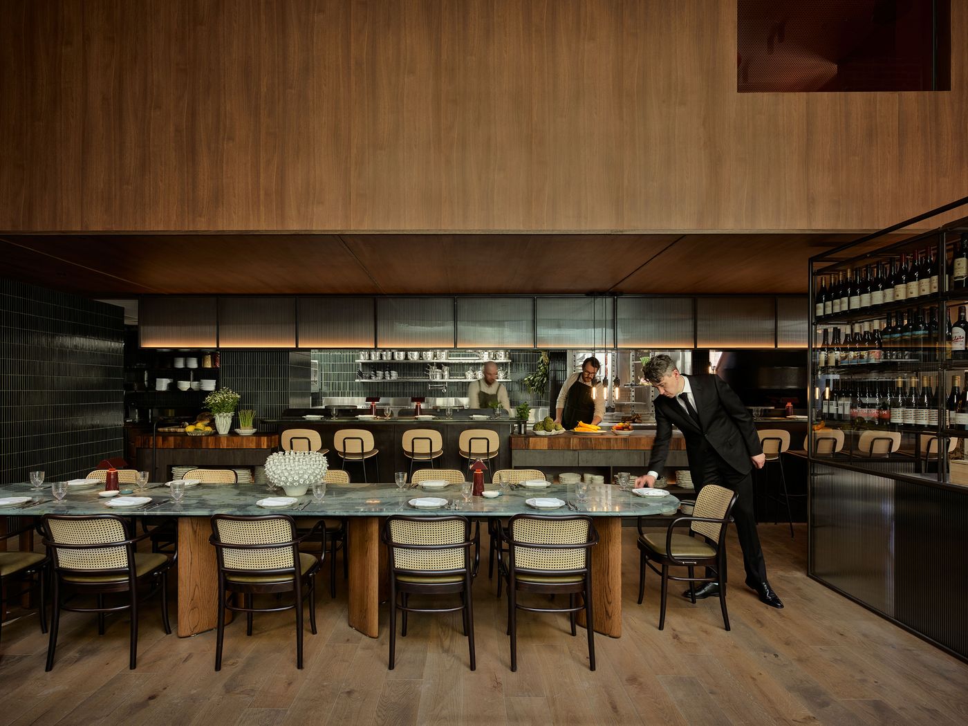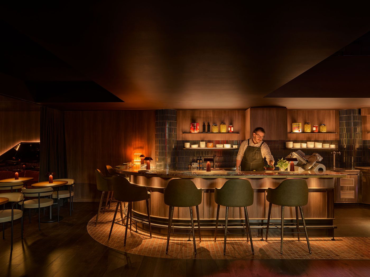 천장까지 이어지는 창을 통해 들어오는 자연광이 가득한 마르멜로의 이중 높이 다이닝룸은 절제되면서도 극적인 느낌을 준다. 빛나는 유리 전면의 와인 셀러, 천장에 매달린 뱀 모양의 조명 설치, 맞춤형 숯불 그릴과 나무 오븐이 공간에 깊이를 더한다. 대조적으로, 미스터 밀스는 은은한 조명, 독특한 예술 작품, 그리고 친밀한 부스가 심야의 매력을 발산한다.