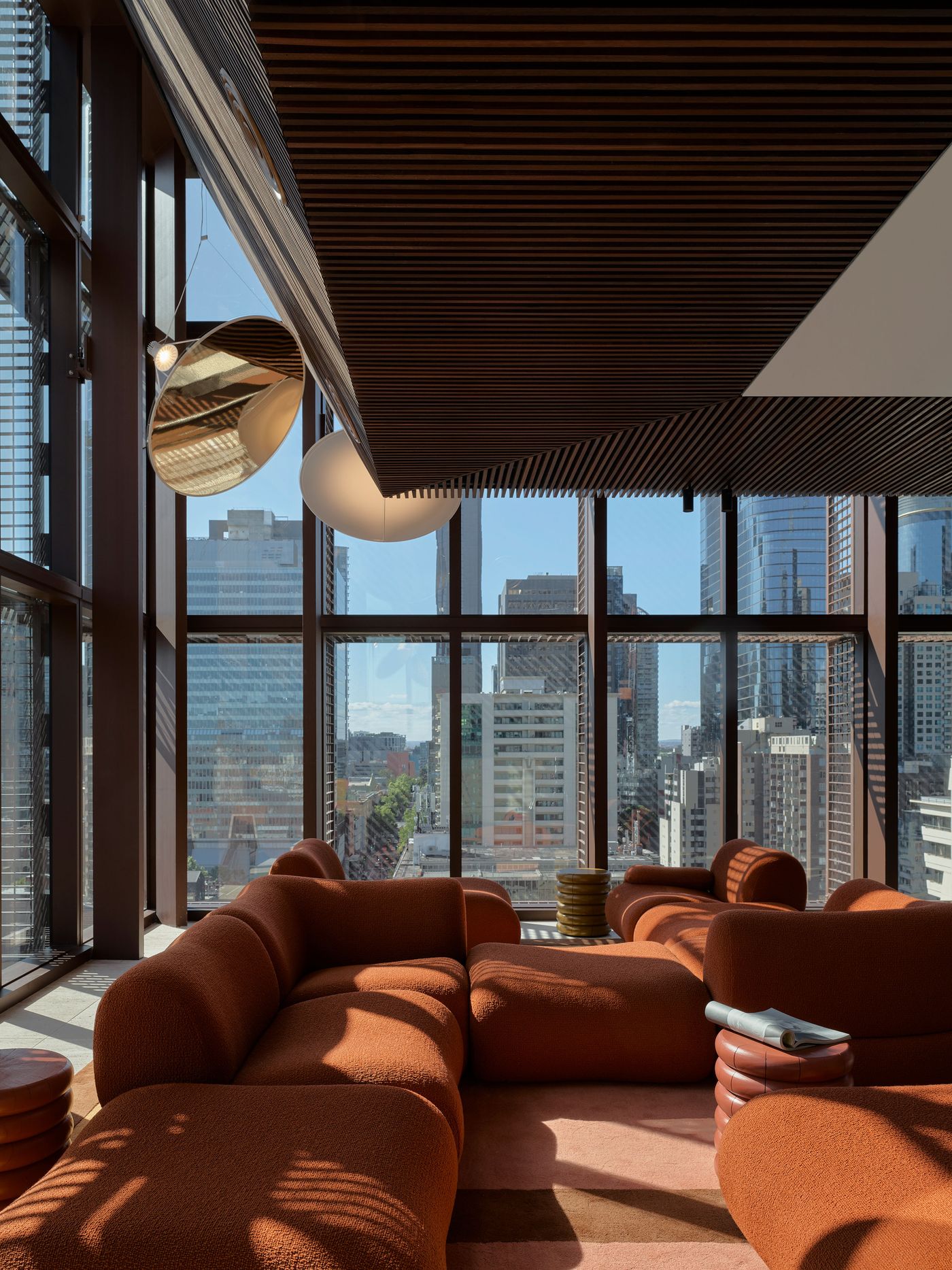 The building itself makes no attempt to hide its Melburnian lineage, drawing inspiration from nearby 20th century architectural landmarks such as the stately interwar Palazzo style of the T&G Building and the more restrained Functionalist cues of the former Russell Street telephone exchange. Kennedy Nolan’s design deftly reinterprets these references through a contemporary lens, layering traditional materials—brickwork fired in a historic western Victorian kiln and terracotta-tinted precast concrete—with modern expressiveness.