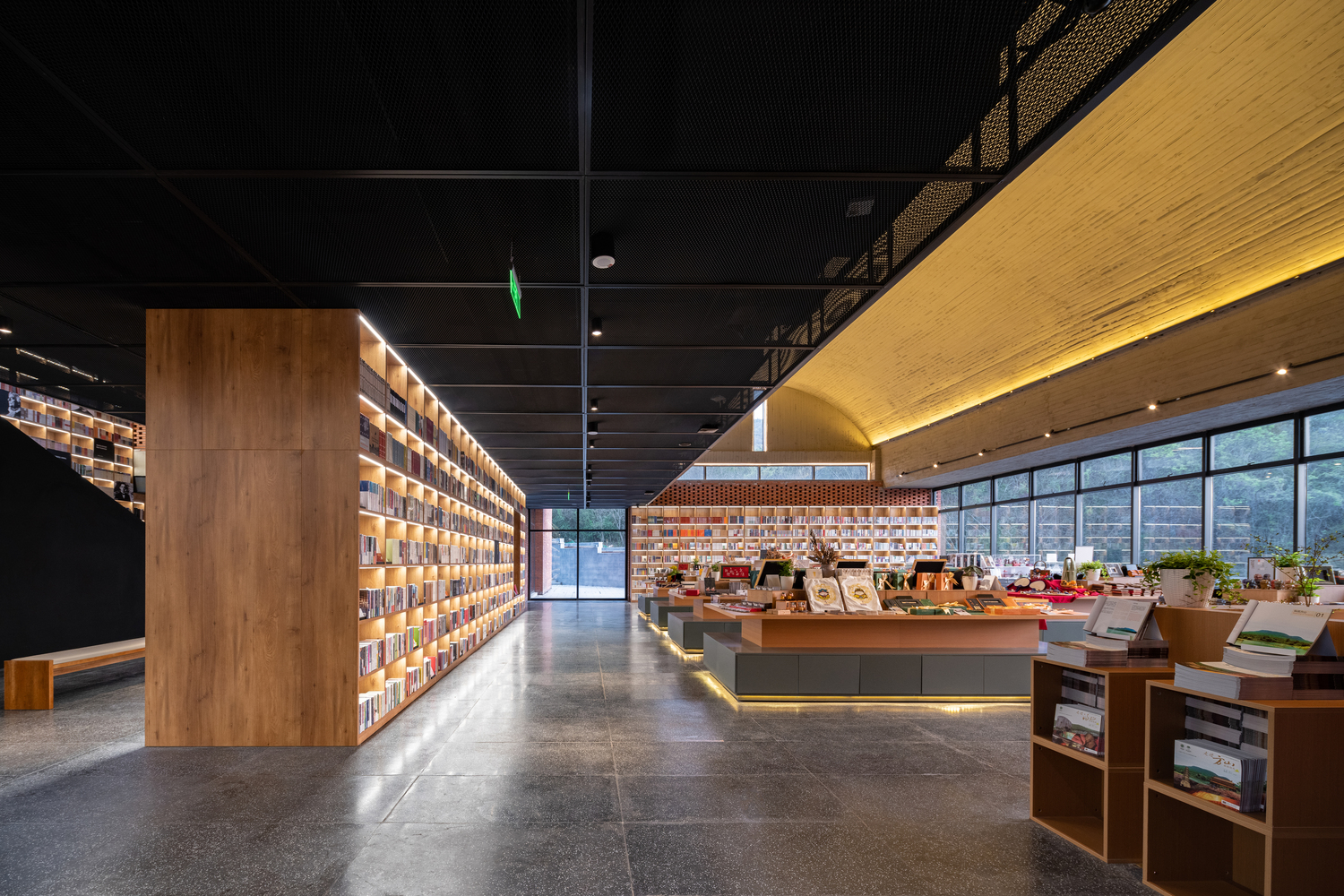이 서점은 단순한 도서 판매 공간을 넘어 다양한 문화적 경험을 제공하는 복합 공간으로 설계되었습니다. 주요 서가 공간 외에도 아이들을 위한 독서 공간, 소규모 전시 영역, 다목적 이벤트 공간이 유기적으로 연결되어 있습니다. 카페테리아는 방문객들이 편안하게 책을 즐길 수 있는 휴식 공간을 제공하며, 옥상 테라스는 주변 경관을 조망할 수 있는 열린 공간으로 기능합니다.