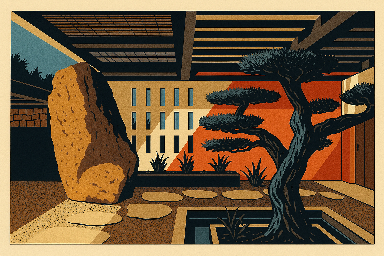 - 스타일/톤: 한국 전통 중정의 현대적 해석, 미니멀리즘과 자연주의의 결합, 명상적이고 평온한 분위기