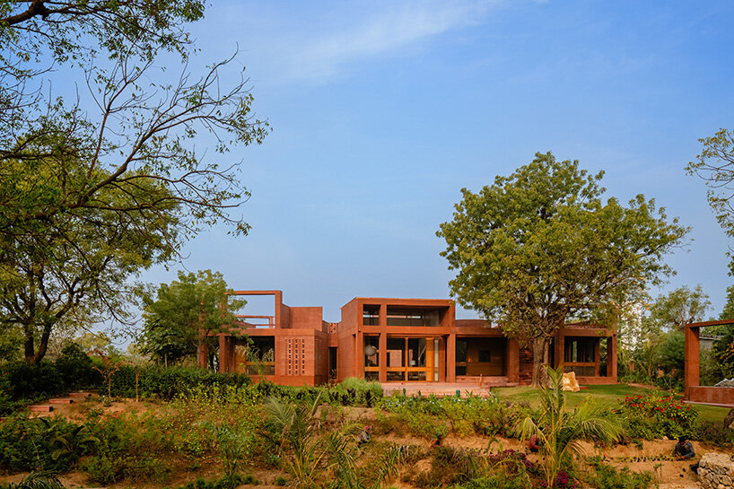 Just outside Gandhinagar, India, the Alloa Hills Weekend House folds gently into the land, allowing the terrain to dictate its rhythm. Studio Sangath approached the residential project with quiet attentiveness, designing a retreat that prioritizes stillness and intimacy with the surrounding topography. Tucked into a bend in the Sabarmati River’s landscape, the house offers its residents a reprieve from the acceleration of city life, but also extends its welcome to artists, writers, and filmmakers seeking time away to create.