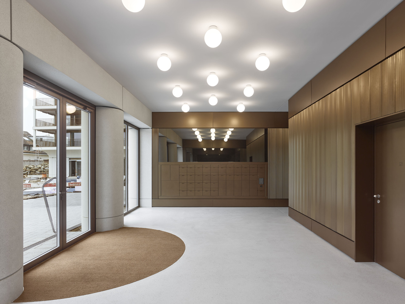 이 공간은 외부의 공개된 도시 공간과 새로운 지구의 중심에 자리한 정원을 자연스럽게 연결하며, 열린 공간이면서도 보호받는 느낌을 주는 커뮤니티의 거실 역할을 한다.