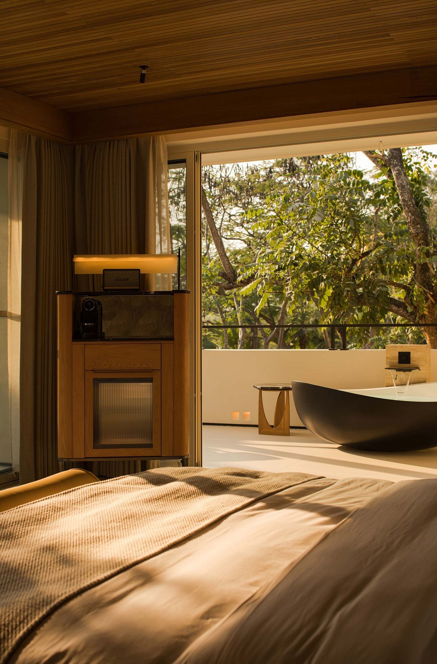 절제되면서도 풍부한 질감의 재료 구성은 지역적 전통을 암시하면서도 단순한 모방을 거부하는 수공예 가구들로 완성된다. 여기서 디자인은 시각적 소음을 철저히 배제하며, 열대우림이 공간의 주인공으로서 마땅한 역할을 담당하도록 한다.