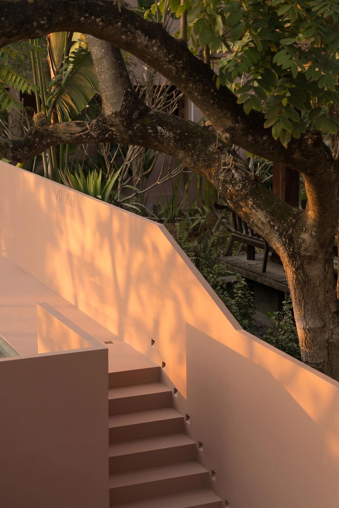 깔끔한 직선형 볼륨과 일관된 재료 구성이 특징인 이 건물은 모더니스트적 엄격함에도 불구하고 장소에 깊이 뿌리내린 듯 느껴진다. 이는 상당 부분 건물의 흙빛 분홍색 외관 덕분이다. 마치 토양에서 빌려와 햇빛으로 걸러낸 듯한 이 색조는 구조물이 열대우림의 변화하는 질감과 그림자 속으로 자연스럽게 스며들도록 한다.