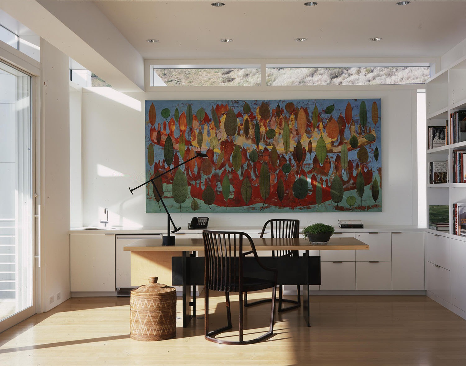 차양과 루버는 파사드와 일체화되어 두 가지 기능을 동시에 수행한다. 하나는 주택과 테라스 사이의 전이공간을 조성하는 것이고, 다른 하나는 강렬한 캘리포니아의 햇빛으로부터 유리면을 보호하는 것이다. 이러한 디테일은 건축가의 세심한 배려를 보여준다. 아름다운 전망을 확보하면서도 거주자의 실제적 편안함을 놓치지 않은 것이다.