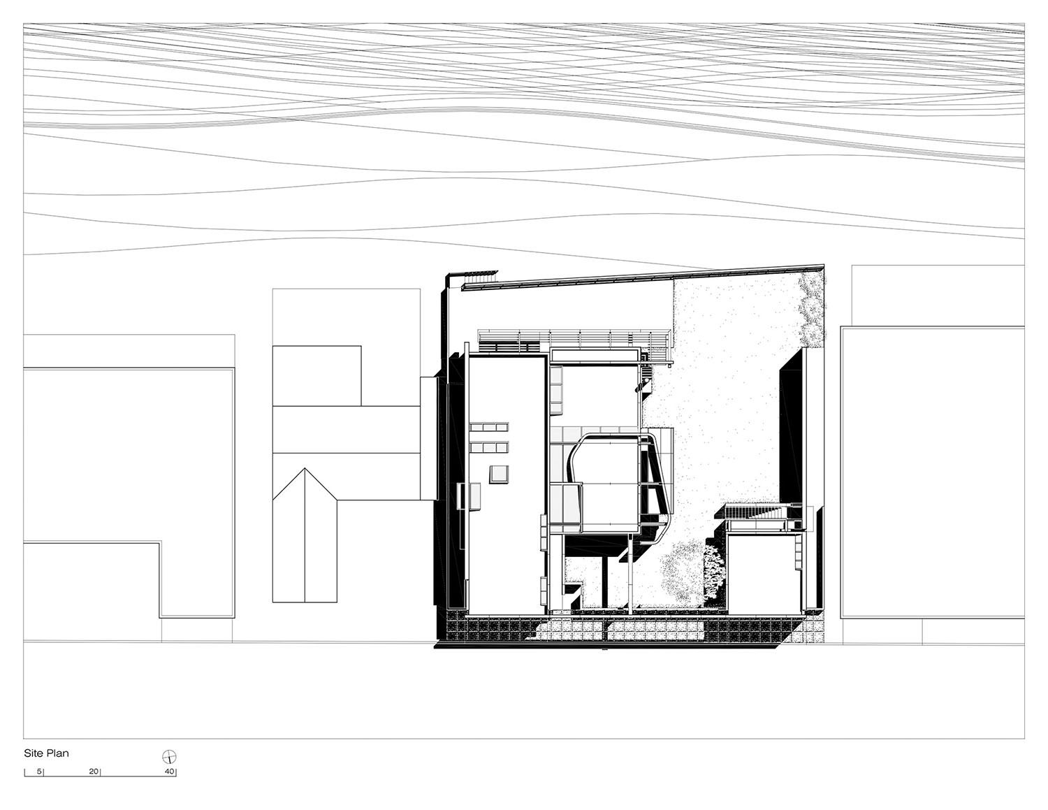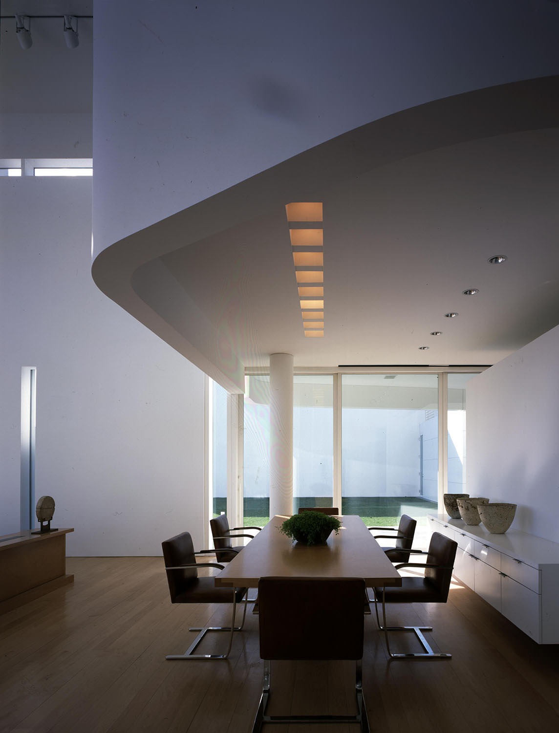 태평양 연안 고속도로의 조밀한 건축 구간에 자리한 이 주택은 세 방향의 서로 다른 풍경을 마주한다. 남쪽으로는 끝없이 펼쳐진 태평양을, 서쪽으로는 정갈하게 구획된 중정을, 북쪽으로는 도시의 활기가 흐르는 고속도로를 바라본다. 이러한 입지적 특성은 건축가에게 하나의 명제를 제시했다. 어떻게 도시의 소음과 바다의 고요함 사이에서 균형을 찾을 것인가?