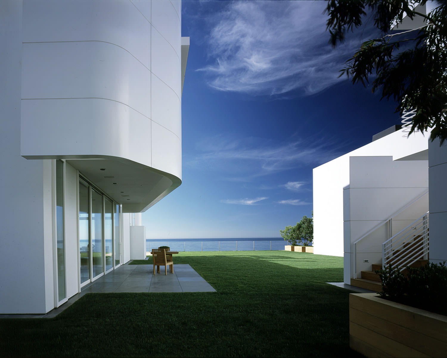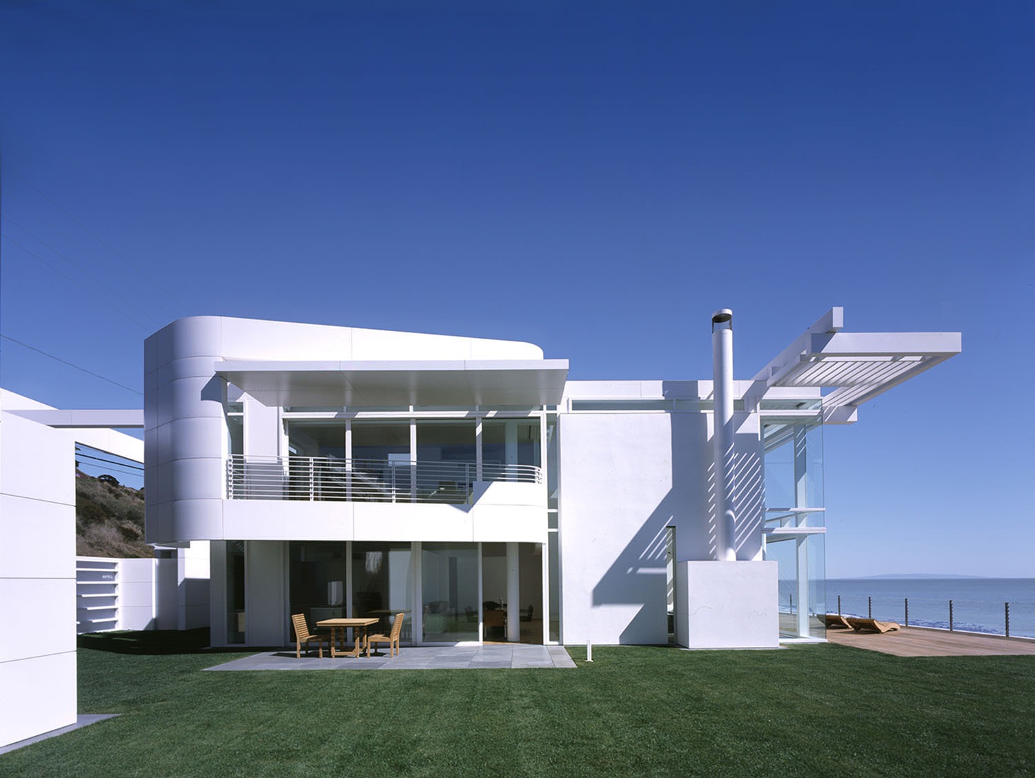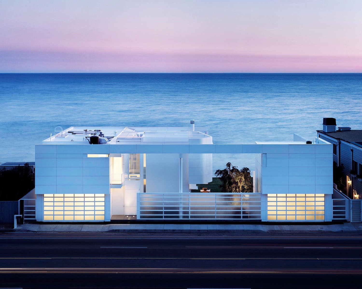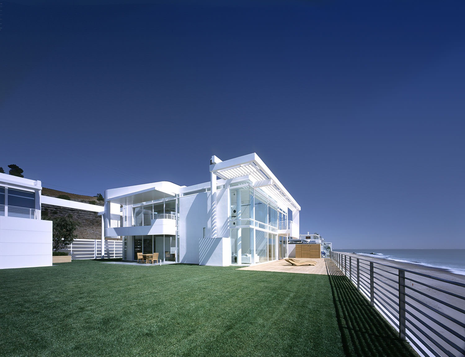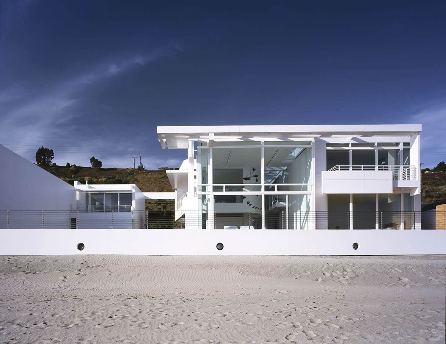 Situated along a densely built section of the Pacific Coast Highway, this house fronts the Pacific Ocean to the south, a courtyard to the west, and the highway to the north. The courtyard provides a visual and spatial link between the entry and the ocean beyond. Like many courtyard buildings in southern California, the open space defines an exterior living room.