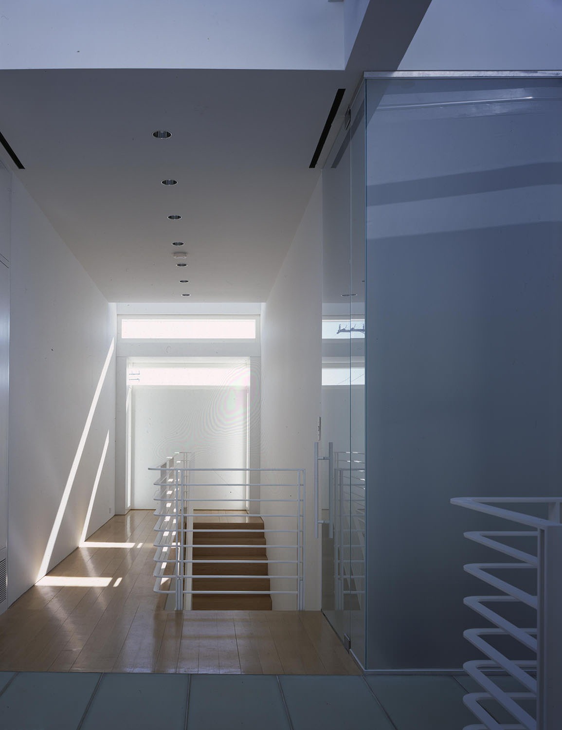 주택을 관통하는 동선은 하나의 서사를 구성한다. 반투명 유리로 마감된 북쪽 입구벽에서 시작된 여행은 본채와 게스트하우스 사이의 중정으로 이어진다. 이 순간, 방문자는 2층 높이의 입구공간에서 거실을 통해 바다까지 이르는 액자식 전망과 마주하게 된다. 마치 한 폭의 그림을 들여다보듯, 공간의 깊이가 한눈에 펼쳐진다.