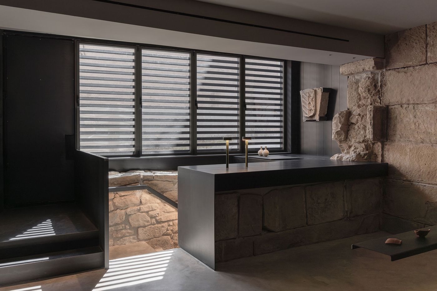 하루 종일 변화하는 자연광이 실내 곳곳에 다른 표정을 선사한다. 오전의 은은한 빛에서 오후의 따스한 황금빛까지. 매끄러운 콘크리트와 거친 자연석의 대비, 부드러운 목재와 차가운 유리가 만나 만들어내는 절묘한 조화 속에서 일상은 서서히 사라지고, 자연과 건축이 어우러진 새로운 경험이 시작된다.