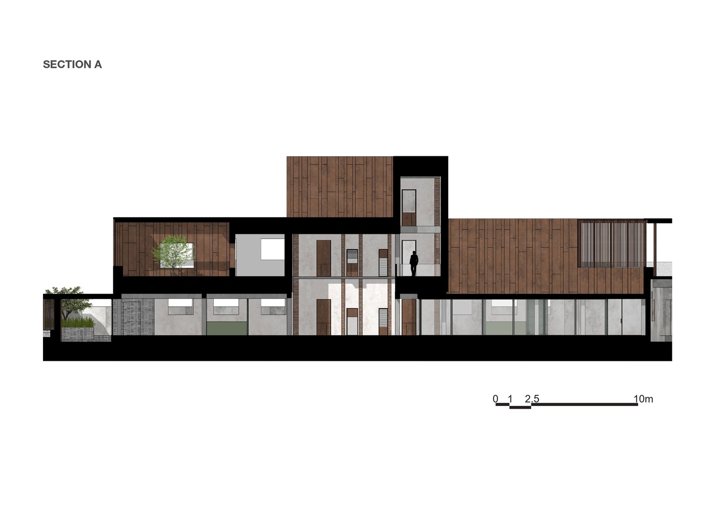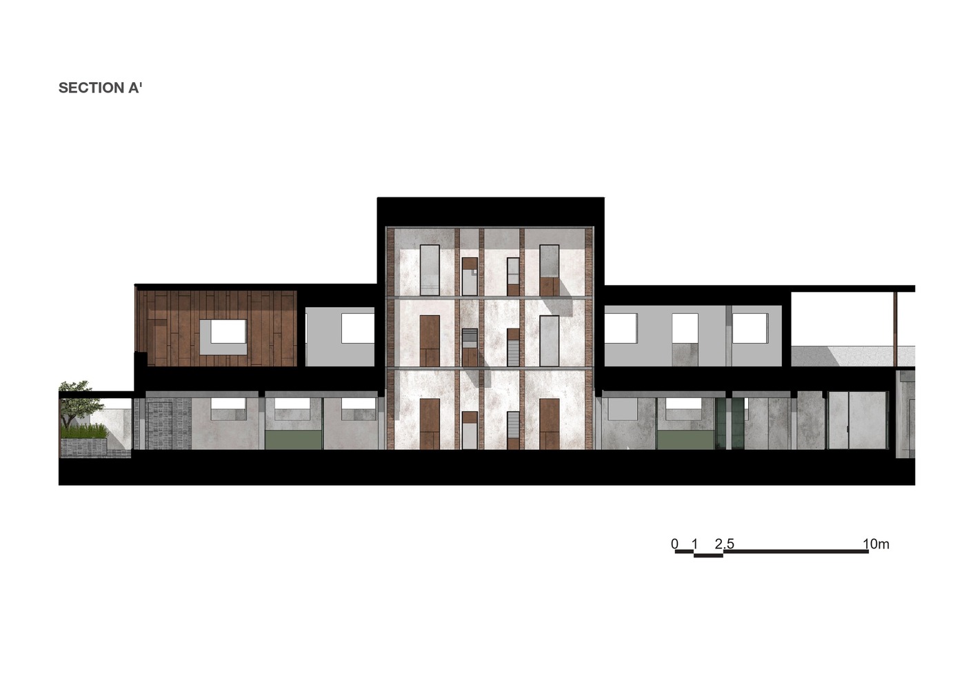 The tactile material palette is kept minimal and raw to complement the existing stucco facades. Corten steel is used as the main surface material given its relevance as an industrial material which weathers and changes, recording the progression of time. Interior design strategy celebrates the tension between new and old; new plaster finishes juxtaposed with partially exposed brick and structural elements create a dialogue between past and present.