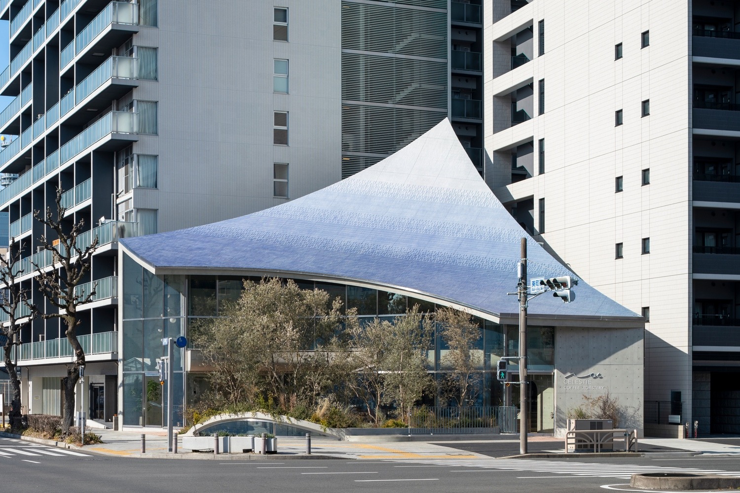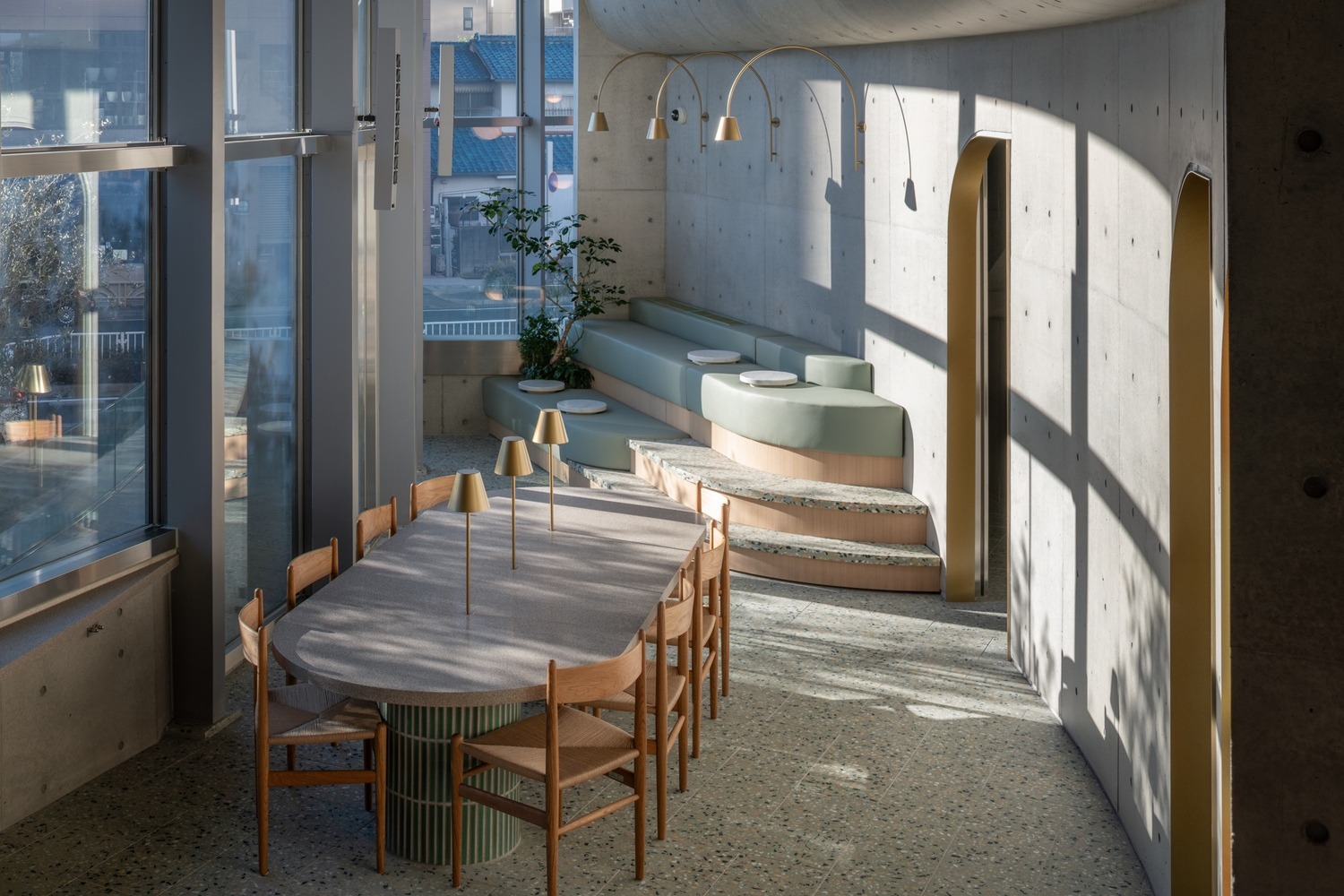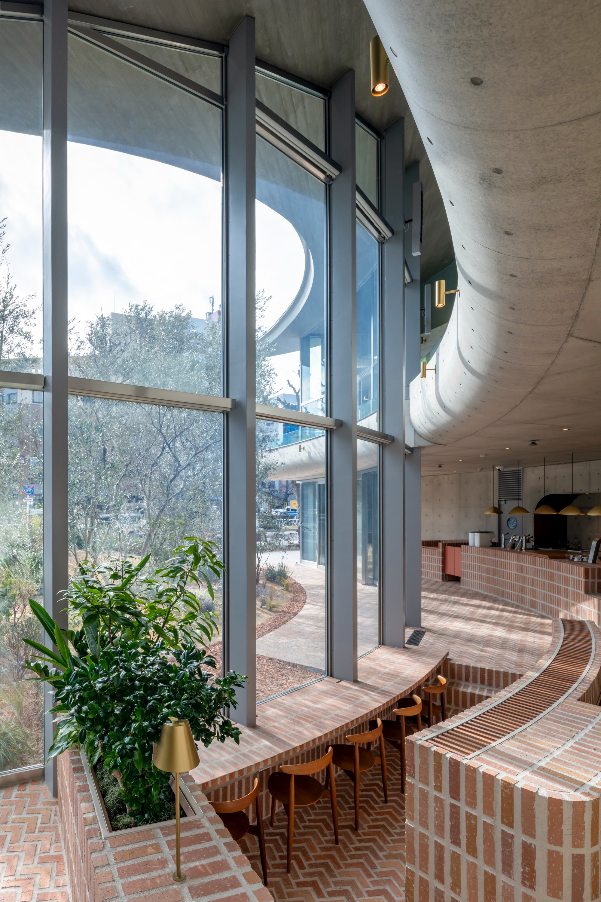 나고야 기반 물류회사가 지역 커뮤니티 활성화를 위해 기획한 이 복합시설은 카페를 중심으로 한 랜드마크 공간을 지향한다. 건축가 나가야마 유코는 클라이언트의 비전에 응답하여 마치 하늘에서 떨어진 듯 가벼운 지붕이 중정을 감싸는 건축을 완성했다.